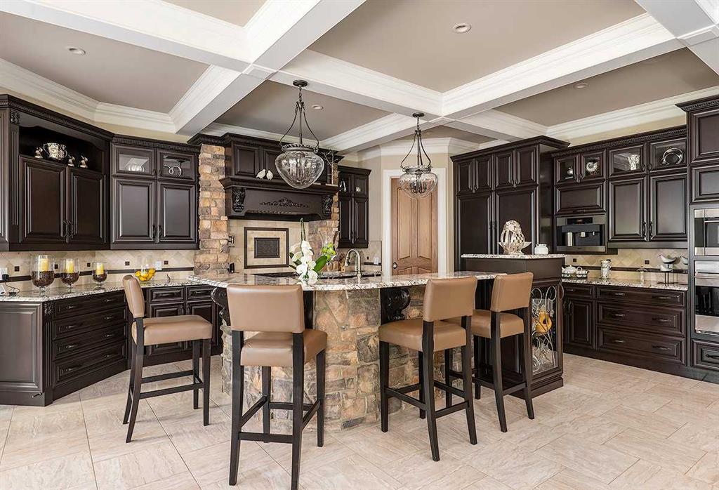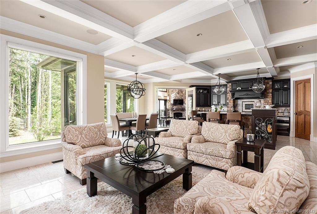 Welcome to an extraordinary residence where every detail has been meticulously curated to offer a lifestyle of unparalleled luxury and sophistication. Brazilian Mahogany french doors open to the foyer, defined by a striking 20’ coffered ceiling and crystal chandelier. A spectacular curved staircase consists of continuous wood railing, metal spindles and hardwood and carpeted treads. The main living areas are designed for both grand entertaining and intimate daily life. The living room boasts 20’ coffered ceilings and floor-to-ceiling windows that provide stunning views of the backyard & trees beyond. A two-sided stone fireplace connects seamlessly to the cozy hearth room, nestled between the kitchen and formal living and dining spaces. The chef’s kitchen is a masterpiece of design and functionality, featuring travertine floors, warm maple cabinetry, granite counters with tile backsplash, and professional grade Wolf, Sub-Zero and Fisher & Paykel appliances. A functional walkthrough butler’s pantry includes a second fridge and bar area. Adjacent to the kitchen is the 4-Season Sunroom, featuring a vaulted beam ceiling with skylights, a corner gas fireplace, and a wet bar and built-in Wolf BBQ kitchen. Folding doors open to the outdoor deck and an automated screen can be lowered. The master suite is a private sanctuary with coffered ceilings, indirect lighting, crystal chandeliers, sconces, and a raised gas fireplace with a stone surround. The spa-inspired ensuite features marble counters and floors, a custom tile walk-in steam shower with rain shower and body jets, a jetted tub with fireplace sconces, and Wolf towel warmer drawer. The expansive dressing room offers custom cabinetry, mirrors, and an island with marble countertop. Upstairs, hardwood floors line a stunning catwalk that overlooks the main floor. This level includes three additional well-appointed bedrooms: each with it\'s own ensuite bath and walk in closet. The basement boasts 10’ ceilings and is an entertainer\'s dream. Amenities include an open-style theatre with starlight ceiling, a large stone wet bar, and a cozy family room with gas fireplace. The stunning, temperature-controlled wine cellar, with a capacity for over 850 bottles, features a barrel ceiling, modern metal racking, a unique epoxy floor with cork mosaic, and a sealed glass door with a combination lock. There is also a large dedicated gym with stone TV wall, and a sophisticated office with cherrywood wainscotting, cabinetry, a cherrywood coffered ceiling, and a gorgeous leather floor.