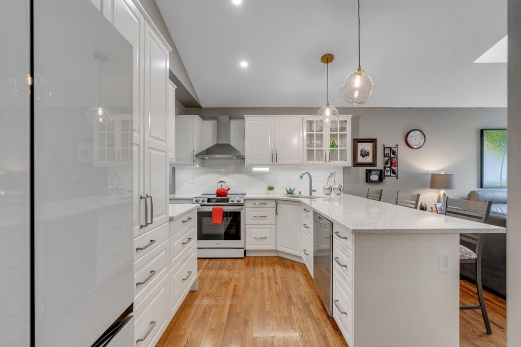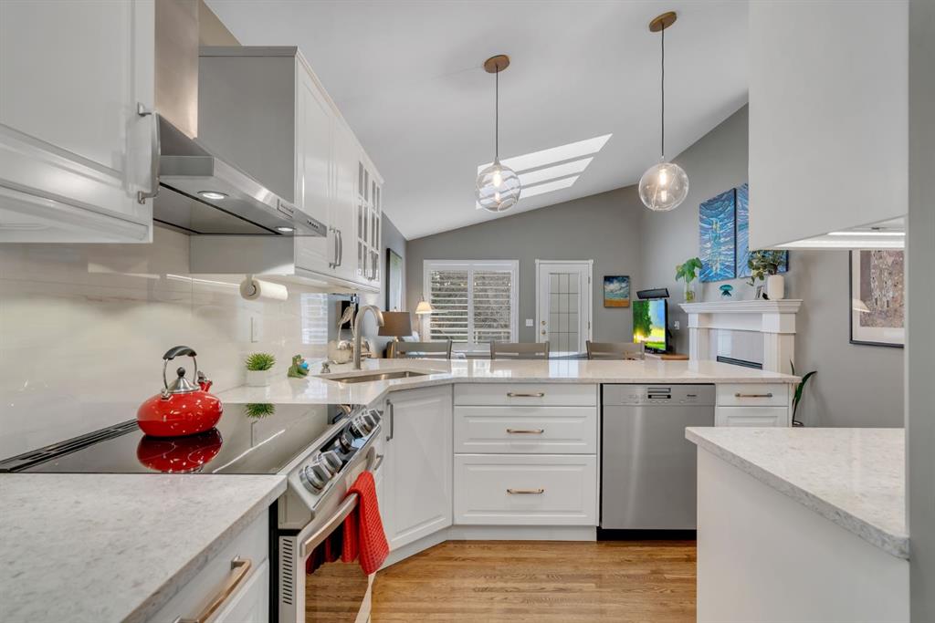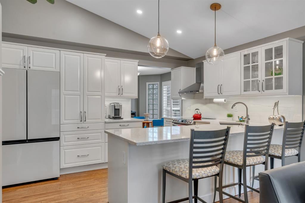 ***OPEN HOUSE - Sunday Nov 9th 2pm-4pm*** This beautifully upgraded home backs onto greenspace with a sunny south backyard and offers bungalow style living with bonus space for guests or family. As you enter, the main level features soaring vaulted ceilings in the living and dining rooms, refinished hardwood floors throughout, and an upgraded white kitchen with quartz countertops, eating bar, under-cabinet lighting, pull-out drawers, a pantry with organizers, and a newer white glass front Samsung Bespoke fridge with beverage center and induction stove (2023) plus the nook has extra storage. The family room with skylights and beautiful gas fireplace with tile surround provides direct access to the no-maintenance deck overlooking the greenspace. The primary bedroom on the main floor offers the ultimate convenience—no stairs required—and includes a walk-in closet, updated ensuite with new shower and soaker tub and heated floors. It also provides deck access. A main floor den/office, powder room and laundry room complete this ideal layout. Upstairs, the loft is perfect for a reading area or office and the additional bedroom with walk-in closet and ensuite make the perfect private space for older kids, guests, or extended family. The developed basement adds even more versatility with two additional bedrooms (one with a built-in Murphy bed), bathroom with shower, a spacious rec room with a gas fireplace, workout area with cork flooring and plenty of storage. Additional updates and features include: air conditioning, all Poly-B replaced, California shutters, new garage door (2023), newer furnace (2019), extra-wide driveway, gas BBQ line on the deck and backyard shed. This home truly combines the ease of one level living with the flexibility of additional space — a rare and truly special find in Riverbend! Ideally located on one of the community’s best streets, it backs directly onto greenspace and is just a short walk to the Bow River pathways, Quarry Park amenities, and offers quick access to Glenmore Trail and Deerfoot- don\'t miss out on this great home!