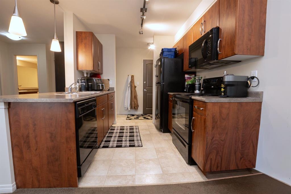 Step inside this bright and inviting two bedroom, two bathroom corner condo in Aurora Estates, where comfort and style blend effortlessly. The open concept layout connects the modern kitchen, equipped with six appliances, to a spacious living and dining area that’s filled with natural light. The primary bedroom offers a walk through closet leading to a private four piece ensuite, while the second bedroom and additional full bathroom provide flexibility for guests, family, or a home office. In suite laundry adds convenience, and every detail of the design supports easy, low maintenance living. From the living room, step out onto the MASSIVE 8\' x 22\' deck, a perfect space to relax or entertain while enjoying your private corner location. An assigned underground heated parking stall keeps your vehicle protected through the winter months. Aurora Estates is one of Grande Prairie’s most sought after condominium communities, admired for its professional on site management, cleanliness, and peaceful setting. Condo fees include heat, water, garbage removal, snow clearing, landscaping, and full building maintenance, allowing you to enjoy a quiet and worry free lifestyle in a beautifully cared for environment.