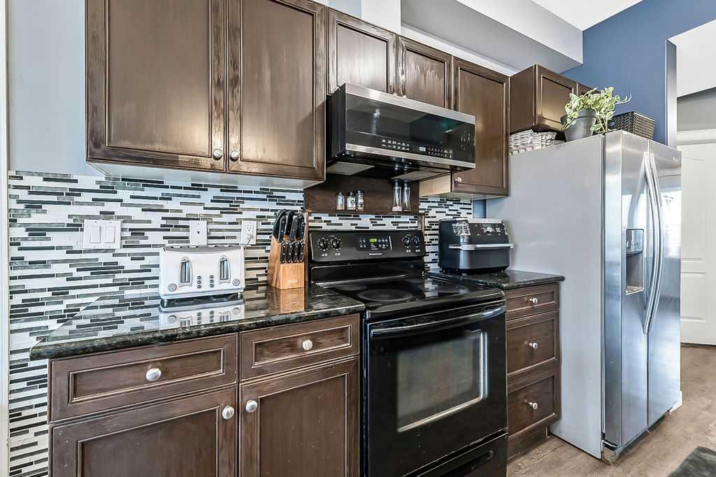 Enjoy two private patios—one east-facing to capture the morning sun and one west-facing with beautiful mountain views and evening light. The primary bedroom includes a full 4-piece ensuite, and there’s a second full bathroom conveniently located near the additional bedroom.