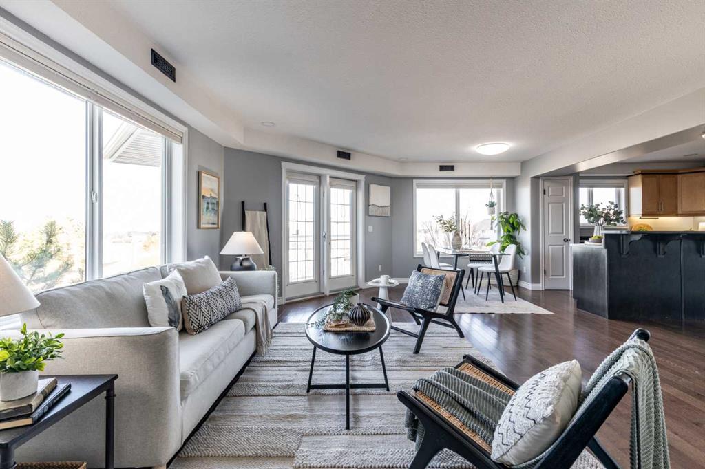 Stunning Views and Delicious Sunshine! This beautifully maintained 2-bedroom, 2-bathroom Top-Floor condo offers exceptional value and lifestyle!! Set in a peaceful, well-managed building, it\'s ideally located just steps from scenic walking and biking trails, with views of the iconic Teepee. Convenience is key, with nearby access to schools, parks, playgrounds, and daycare facilities. Inside, you\'ll love the bright and functional kitchen, complete with a full New S/S appliance package and a versatile island that flows into a sunlit dining space—perfect for entertaining or everyday living. The open-concept layout is both cozy and practical, featuring an inviting living room, a welcoming entryway, and a smart division of space with two bedrooms. The primary suite includes a full ensuite, while the dedicated laundry room adds bonus storage and functionality. Natural light pours in through the large windows, enhancing the warm and inviting atmosphere throughout. Step outside to your private patio and enjoy those stunning coulee views and vibrant sunsets, and glowing sunrises—a perfect start or end to any day. Additional perks include one parking stall and plenty of street parking for guests. Whether you\'re an outdoor enthusiast or simply enjoy peaceful surroundings, this location is a dream for walking and biking lovers!!