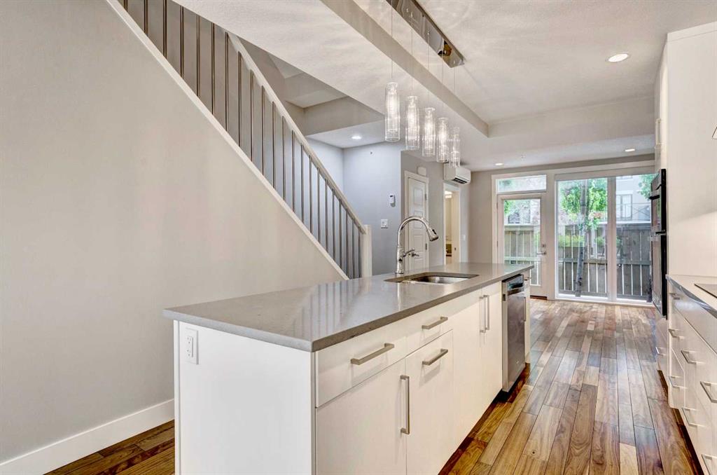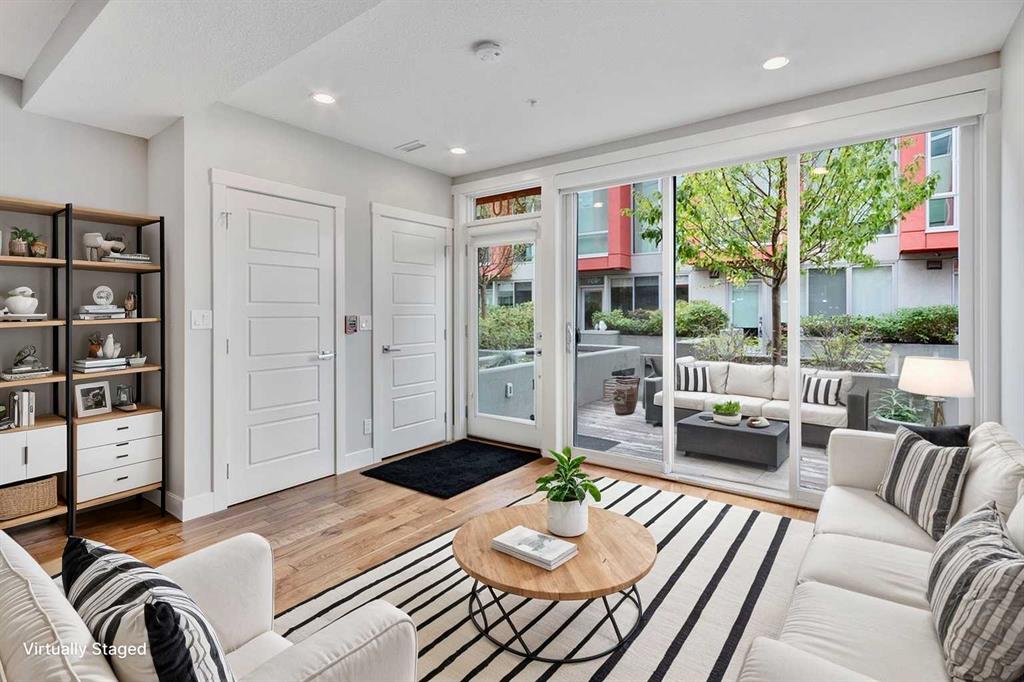 Striking design and concrete construction set this four-level townhome apart as a rare find in Marda Loop. Built with ICF, steel, and concrete, it’s rock-solid, whisper-quiet, and designed for efficiency — with radiant in-floor heating and condo fees that include every utility except electricity, so you’ll never sweat over fluctuating bills again. Inside, sunlight pours through floor-to-ceiling windows, highlighting the open-concept main floor with hardwood floors, a sleek quartz kitchen, and a defined dining space for real entertaining (not just bar-stool meals). Step out to your private front patio for a glass of wine or weekend grilling — gas hookup included. Upstairs, two generous bedrooms, a spa-style bath with heated tile floors, and a dedicated laundry room keep things practical. The entire third floor is your primary retreat: a massive walk-in closet, a luxe spa ensuite, and a private terrace made for slow mornings or sunset cocktails. And yes — there’s a rooftop patio with city and mountain views that will stop you in your tracks. Extras: TWO titled, heated underground parking stalls (rare in South Calgary!), smart wiring, A/C, in-unit storage, and a well-managed, pet-friendly complex & listed $125,000 below city assessment! All of this in the heart of Marda Loop — steps to cafés, parks, boutiques, and 10 minutes to downtown. Modern architecture, zero compromise, and unreal value.