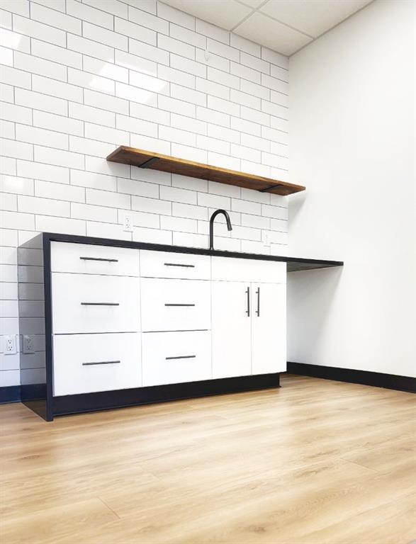 A dedicated coffee/work station is conveniently equipped with a sink, cabinetry, and sleek quartz countertops, bringing a fresh vibe to your space.