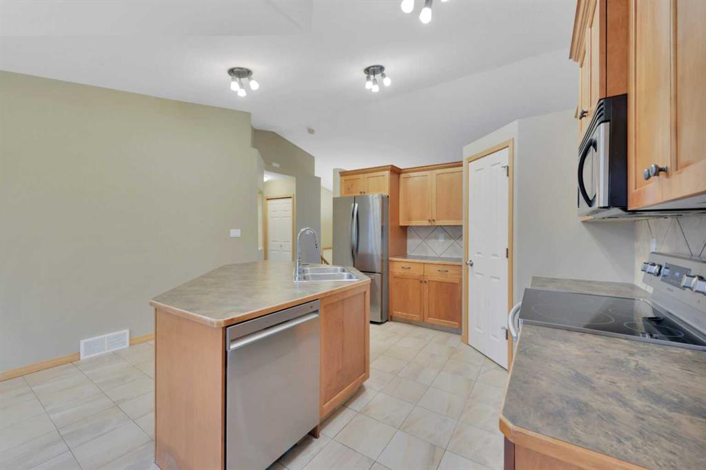 Welcome to this beautifully maintained 1,325 sq. ft. bilevel located in a desirable community, perfectly suited for a new family. With a fully developed basement, 5 bedrooms, and 3 full bathrooms, this home offers both space and comfort. Tall vaulted ceilings greet you as you enter, highlighting the bright, open-concept design. This no-carpet home is ideal for anyone with allergies or asthma. The living room features expansive west-facing windows and a central gas fireplace with stone accents and a mantle—perfect for hanging Christmas stockings. The thoughtful layout keeps the living room connected to the rest of the main floor while still allowing easy furniture placement. The kitchen boasts a large center island with ample pots-and-pans drawers and a functional corner pantry. Kitchen appliances were all updated in 2023. Adjacent to the kitchen, the dining area offers large windows and access to the 10\' x 13\' deck. Out back, you’ll find six raised garden beds, a spacious yard ideal for family gatherings, and a convenient shed area beneath the deck for storage. The main floor was updated in 2024 with new ceramic tile and hardwood flooring—tile in the bathrooms, kitchen, and dining room, with hardwood throughout the living room, bedrooms, and hallway. Three bedrooms are located on the main level, including the primary suite with its own 3-piece ensuite and walk in closet, plus two additional generously sized bedrooms and a full bathroom. The lower level features a wide-open family room (33\' x 17\') with 9-foot ceilings, two more bedrooms, and another full bathroom. A designated gear/storage room provides space for all of life’s extras. Parks, shopping, restaurants and schools are all within walking distance. Additional highlights include: insulated 22\' x 22\' garage, air conditioning and in-floor heat, shingles and hot water tank replaced in 2020, HRV - heat recovery ventilator for improved air quality and energy efficiency.