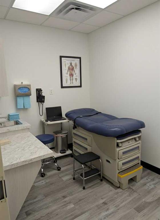 A new medical clinic in Medicine Hat is available for lease to family physicians who are interested in a move-in ready, fully renovated, high quality space. Located beside a pharmacy in a busy area of the city, this clinic would make a fantastic walk-in location! This lease would be through the leaseholder as a sub-tenancy and is being offered at $6,000.00 per month, including utilities. Patient exam beds and waiting area furniture shall be provided as shown in a few AI generated photos attached to show an idea of how it will look. This clinic has 10 exam rooms, a welcoming reception/waiting area and is easily accessible with the latest automatic door operators on the entry and the patient washroom. It is beautifully done and ready for physicians to start their practice in. Final touches on this amazing space will be completed in the next couple weeks. Layout is similar to how it is but some changes have been made to location of washrooms and a couple exam rooms.