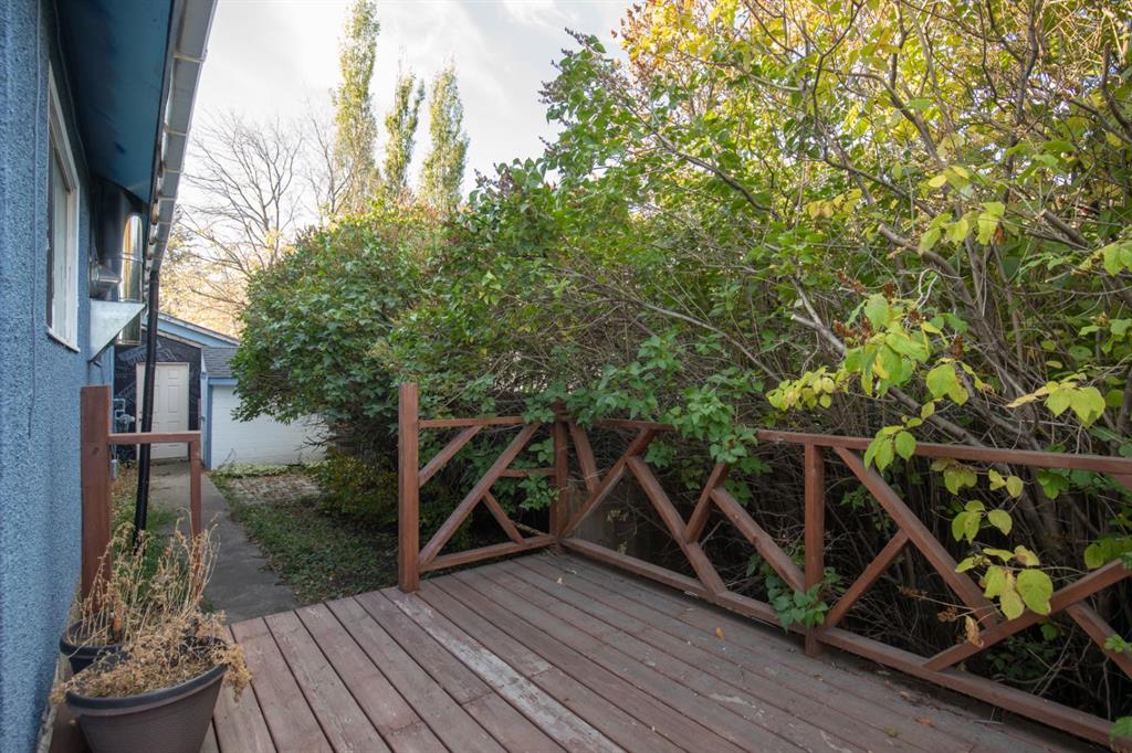 Out back, a fully enclosed breezeway connects to a single detached garage and a large storage room. The south-facing backyard is fully fenced—ideal for pets, gardening, or simply relaxing in the sun. A rear parking pad provides extra room for vehicles, a trailer, or RV. The durable metal roof on the main house adds long-term peace of mind, and the Bowden Golf Course is just a short walk away. A great opportunity for first-time buyers, investors, or anyone looking for a move-in-ready home with character, comfort, and lasting value.