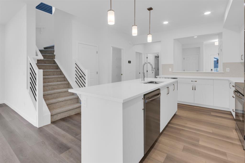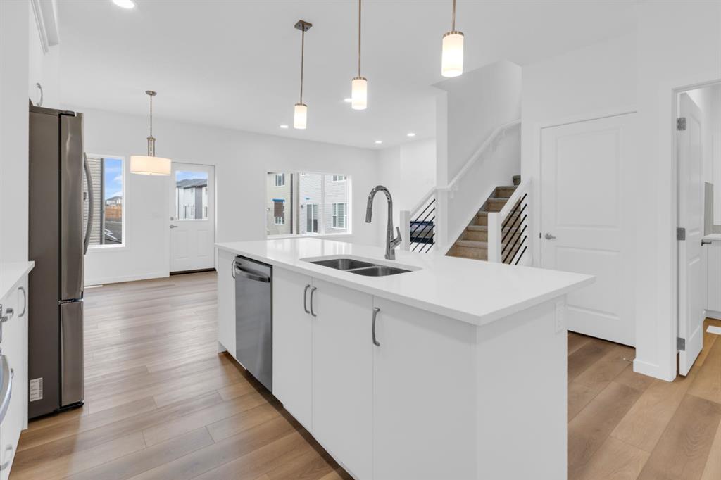 Nestled in the vibrant NE community of Savanna, where Stoney Trail, Deerfoot Trail & the Saddletown LRT Station connect residents to the rest of the city!. Enjoy the benefits of living in an established neighborhood that brings a plethora of amenities right to your doorstep, along with swift access to major highways. Welcome to the COLLINGWOOD – a BRAND-NEW home built by Excel homes. This amazing family home has it all!!! Location, location, location - facing the pond, pathway system & green spaces, literally across the street. This home offers 2241 sf & is delivered in an open plan, designed for families & entertaining. This impressive home offers FIVE BEDROOMS...FOUR of the bedrooms on the upper level with an ADDITIONAL bedroom and FULL BATH on the main floor. The kitchen is a show stopper with a large island, built in SS appliances & offers loads of gorgeous white cabinets and drawers for storage. In addition, the main floor boasts a spice / summer kitchen that offers storage cabinets, gas stove/hood fan and sink! You’ll notice the back of the house is almost entirely windows, flooding this home w/natural daylight. Exit to your WEST FACING backyard thru the oversized patio doors! The family room & dining area are connected & offer huge family / entertaining potential. 9’ ceilings & gorgeous luxury vinyl plank flooring make this space airy & bright. Upstairs you’ll find FOUR spacious bedrooms! The primary suite is separated from the 3 others by a huge bonus room that offers vaulted ceilings. The primary suite also features an amazing spa like ensuite w/dual sinks, beautiful tile skirted soaker tub & separate shower. Your laundry room & family bathroom complete this level. THE BASEMENT has a PRIVATE / SEPARATE side entry that leads to the lower level that is roughed in for a future 2 bedroom suite (subject to city permits and approvals). Whether you\'re a growing family, savvy investor, or multi-generational household, this is the home you\'ve been waiting for. With over 35 years of experience, over 15,000 homes built & 75 awards for design & industry excellence, Excel Homes is a wise choice!