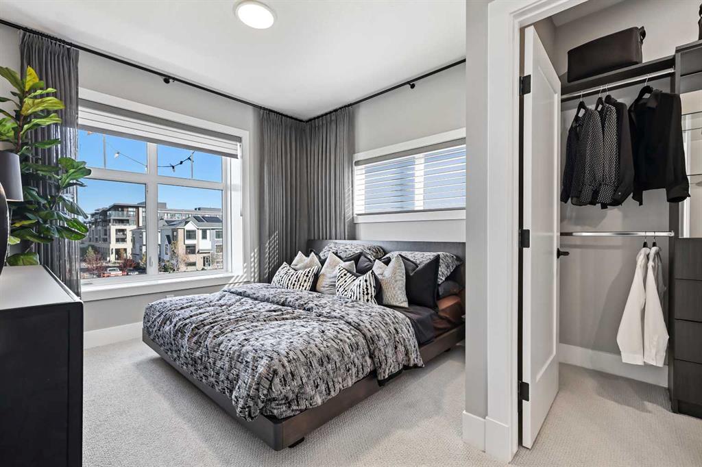 Welcome to Park Place of Mahogany. The latest addition to Jayman BUILT Resort Living Collection is the luxurious, maintenance-free townhomes of Park Place, anchored on Mahogany\'s Central Green. A 13-acre green space sporting pickleball courts, tennis courts, community gardens and an Amphitheatre. Discover the STUNNING FORMER SHOW HOME CABERNET! An elevated courtyard facing a townhome with park views featuring The an ELEVATED SHOWHOME SPECIFIC COLOUR PALETTE. You will love this palette—the ELEVATED package includes stylish kitchen cabinets. Luxurious tile for the kitchen backsplash. Polished cabinetry\'s hardware and interior door hardware throughout. Beautiful luxury tile on the upper-floor bathrooms and laundry and beautiful laminate flooring on the main, along with stunning pendant light fixtures over the kitchen and eating bar in a design finish. The home welcomes you into over 1700 sq ft of fine AIR CONDITIONED living, showcasing 3 bedrooms, 2.5 baths, a flex room, a den and a DOUBLE ATTACHED SIDE-BY-SIDE HEATED GARAGE. The thoughtfully designed open floor plan offers a beautiful kitchen with an an upgraded JennAir appliance package with built-in wall oven/microwave combo, chimney hood fan with shroud, gas cooktop and French-door refrigerator. Upgraded with Showhome wallpaper and window coverings package. Corner Suite with Park views. Upgraded with electric fireplace, washer, dryer and kitchen pendant lights. L-shaped kitchen layout. Undermount sinks throughout. Expanded dining area. Kitchen backsplash tile to ceiling. Moen Align kitchen fixture package. Upgraded matte black bathroom fixture package. Enjoy the expansive main living area, which includes a designated dining area, additional flex space, and an inviting living room, complemented by a nice selection of windows that make this home bright and airy, along with a stunning linear feature fireplace that adds warmth and coziness. North- and South-Facing exposures, with a deck and patio for your leisure. The Primary Bedroom on the upper level, overlooking the greenspace, includes a generous walk-in closet and a 5-piece ensuite featuring dual vanities, a stand-alone shower and a large soaker tub. Discover two more sizeable bedrooms on this level, along with a full bath and 2nd-floor laundry (Washer/Dryer incl). The lower level offers you yet another flex area, ideal for a media room or den/office. Park Place homeowners will enjoy window blinds included, fully landscaped and fenced yards, lake access, 22km of community pathways and is conveniently located close to the shops and services of Mahogany and Westman Village. Jayman\'s standard inclusions for this stunning home are 6 solar panels, BuiltGreen Canada Standard, with an EnerGuide rating, UVC ultraviolet light air purification system, high efficiency furnace with Merv 13 filters, active heat recovery ventilator, tankless hot water heater, triple pane windows, smart home technology solutions and an electric vehicle charging outlet. WELCOME TO PARK PLACE!