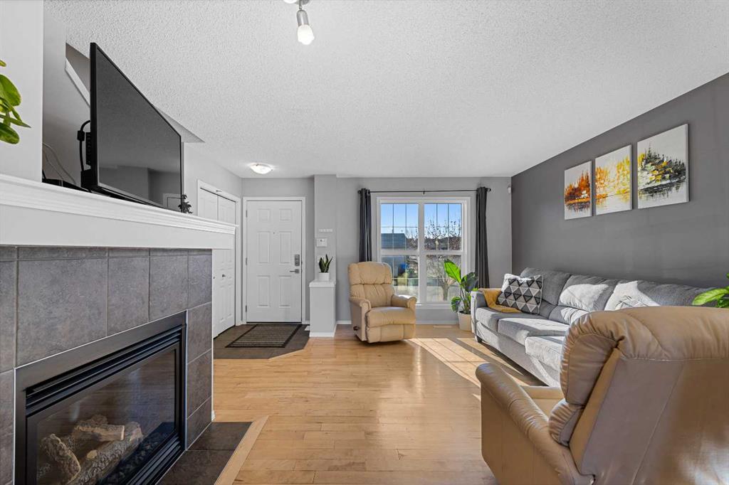 Welcome to 208 Elgin Meadows View! This cozy 2-storey semi-detached duplex offers the perfect blend of comfort, style, and functionality. The main floor features an open-concept layout with a spacious kitchen that includes a gas range and a new dishwasher (2022). The bright dining nook flows into a cozy living room filled with natural light and anchored by a gas fireplace — the perfect spot to enjoy hot chocolate on a winter evening. A convenient half bath completes this level.