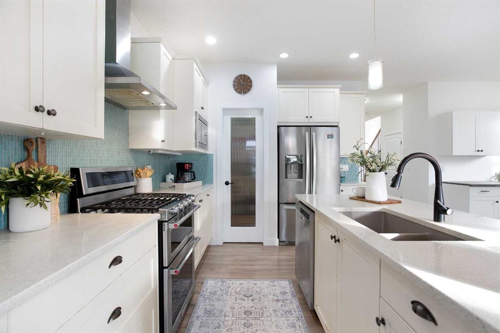 Welcome home to your 2-storey family sanctuary in the heart of highly sought-after Bayview. This spacious home, boasting 5 bedrooms and 3.5 bathrooms across an impressive 3,000 sq ft, is situated on a rare, oversized 4,525 sq ft pie-shaped lot—the ultimate blend of convenience and tranquility. From the moment you walk through the door, the home feels expansive and refined, thanks to nine-foot ceilings and a sophisticated palette across three fully finished levels. The open-concept main floor, anchored by a beautiful gas fireplace, is where life happens. Chefs will adore the gourmet kitchen, which features creamy white cabinetry, a luxurious double wall oven, a powerful gas range, and a brilliant walk-through pantry. Plus, a dedicated main-floor den with custom built-ins ensures you have the perfect quiet spot for working. Upstairs is designed entirely for rest and retreat. The spacious upper-level features new carpeting, generously sized bedrooms, with an expansive primary suite with a spa-like bath, including separate vanities and an oversized glass shower, plus a walk-in closet. 2 additional bedrooms, 4-piece main bathroom and a convenient laundry room, are all located on the 2nd floor. Additionally, the smart layout even features a large family room - ideal for kids\' play or family movie nights, that can easily transform into an enormous 5th bedroom! To top it all off, the finished lower level provides the ideal setup for guests or extended family, offering an additional bedroom, an oversized recreation room, a 4-piece bathroom, ample storage spaces. With central air conditioning and a widened driveway, this home truly delivers modern luxury without compromise, but the true jewel is outside. Your massive, private yard is an entertainer\'s masterpiece! Picture yourself hosting effortless parties on the majestic two-tier deck, sheltered by a gazebo, and complete with a natural gas connection for the BBQ. There\'s a designated spot for your hot tub and a separate area for a cozy fire pit. Located in the family-friendly community of Bayview, this peaceful haven is steps from everything—parks, walking paths, canals, great schools, shopping, and easy access to Deerfoot! Seamlessly blending style, functionality, and ultimate comfort, it’s time to experience modern living at its finest, and it\'s completely turn-key! Don\'t miss this opportunity; contact us to arrange your private showing today!