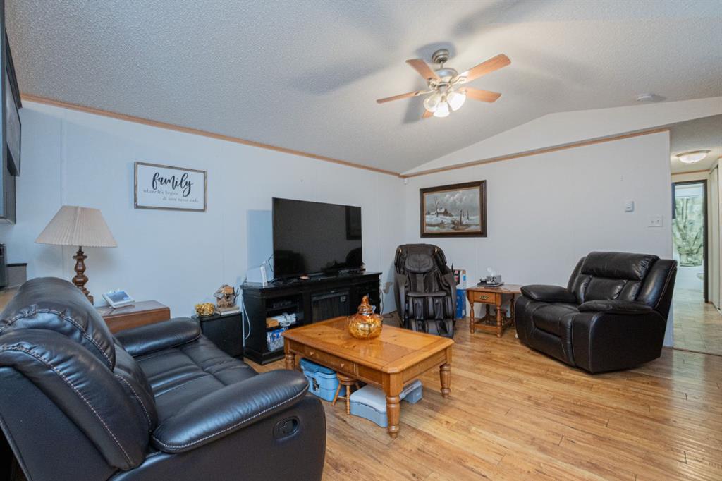 Welcome to this charming 3 bedroom, 2 bathroom mobile home in the Creekside community! This well maintained property offers low maintenance landscaping and a fully fenced yard for added privacy and convenience. Enjoy plenty of parking options with a paved front parking pad, a single detached garage in the back, plus additional RV parking for your toys or guests. The home features an open floor plan with bright living spaces, perfect for relaxing or entertaining. The kitchen boasts stainless steel appliances and tons of cabintrey for storage. The primary bedroom is privately located at the rear of the home and features its own ensuite. The two good sized bedrooms and full bathroom complete the home. Located in a peaceful neighbourhood, with a fee of $175 monthly covering partial water, sewer, trash and snow removal, this home is ready for new ownership. Book your showing today!