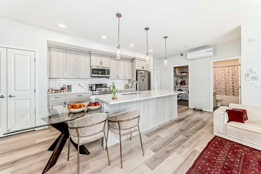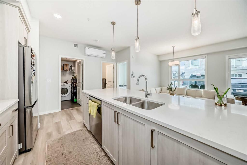 Welcome to this stunning 1100 Sq ft plus corner end unit in the vibrant community of Carrington . A very open floor plan with 2 spaciuus bedrooms and a massive living room dining room combo . In suite laundry and a huge balcony . Owner is a Licensed Real Estate Agent in the Province Of Alberta