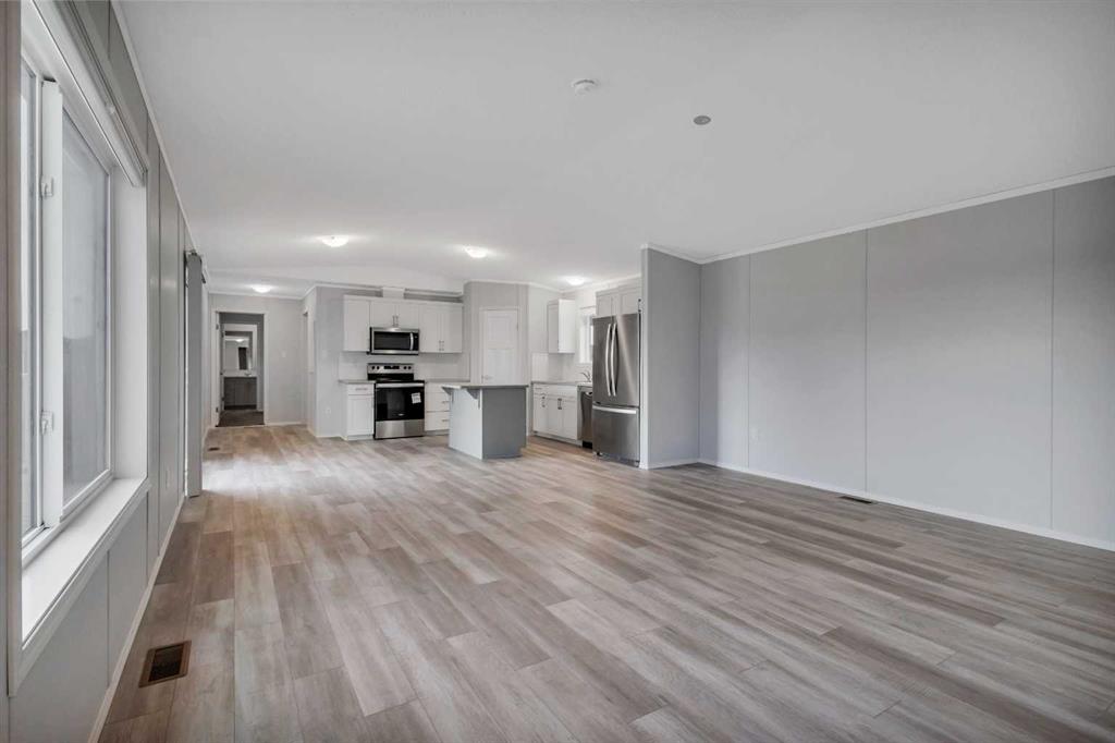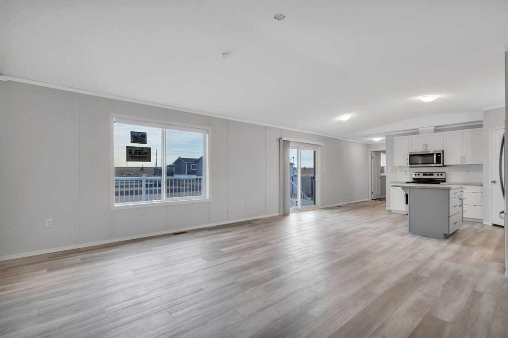 Visit REALTOR® website for additional information. Looking for a hassle-free, move-in-ready, brand-new home? This SRI Emerald modular home is presented by Dynamic Modular Homes in the friendly community of Blackfalds. It is backed by a 10-year home warranty and features durable 30-year architectural shingles, offering peace of mind and lasting value. Enjoy a bright, open-concept layout with vaulted ceilings and an inviting kitchen featuring an island with built-in cabinetry, a breakfast bar, and a spacious pantry. Sliding glass doors lead to your large south-facing deck — perfect for relaxing or entertaining. With 3 bedrooms and 2 full baths, this home is designed for both comfort and function. Two bedrooms feature walk-in closets, and the primary suite includes its own 3-piece ensuite. A stacked washer and dryer add everyday convenience. There is a lot fee of only $600/month that covers snow removal and garbage. Outside, find a convenient public visitor parking pad right beside the home. Located in a prime area of Blackfalds,