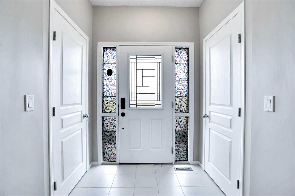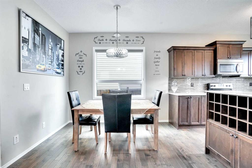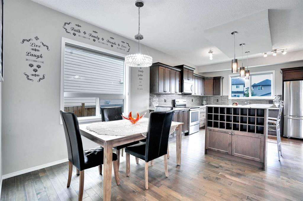 Well below tax assessed value. this beautiful one owner over 1,500 square feet, move-in ready single family home in the established community of Skyview Ranch. Walk in to a lovely open floor plan, bright with natural light from large windows and from stylish modern lighting on the nine-foot ceilings. Rich hardwood floors accentuate the main-floor living area, with durable and beautiful tile at both front and back entrances. The spacious kitchen includes tons of work and storage space, with a large island, breakfast bar, and ample cabinets, finished with lovely granite countertops and upscale stainless steel appliances. The large walk in pantry and built-in wine rack complete this handsome and practical kitchen. Living room features a gas-burning fireplace , topped by a solid wood mantle with wall mounted television and built-in ceiling speakers. Built-in lighted shelves in the living room highlight your treasures. To complete the main floor, a two-piece bath is located off the living room. Upstairs, the spacious master bedroom looks out over the backyard. It comprises ample space for a king-sized bed, and boasts a lovely ensuite with over-sized soaker tub and walk in closet. There are second and third bedrooms upstairs for the kids or home office. The upstairs also features a four piece main bath and convenient laundry facilities. The home has dual front-door closets and a huge back closet for storage of all your outdoor essentials. An added bonus is central air conditioning. The basement includes rough in for a future bathroom and has unlimited potential for whatever type of additional space your family needs. This home features a large open back yard with poured garage pad saving you the cost while building your own double garage, gas barbecue hook-up on the deck, and side fencing. This home is located in family-friendly Skyview Ranch, near parks, schools, walking paths, transit and amenities, and with easy access to Stoney and Deerfoot Trail. Add a double garage package can be purchased for under $11.000 if you roll up your sleves.