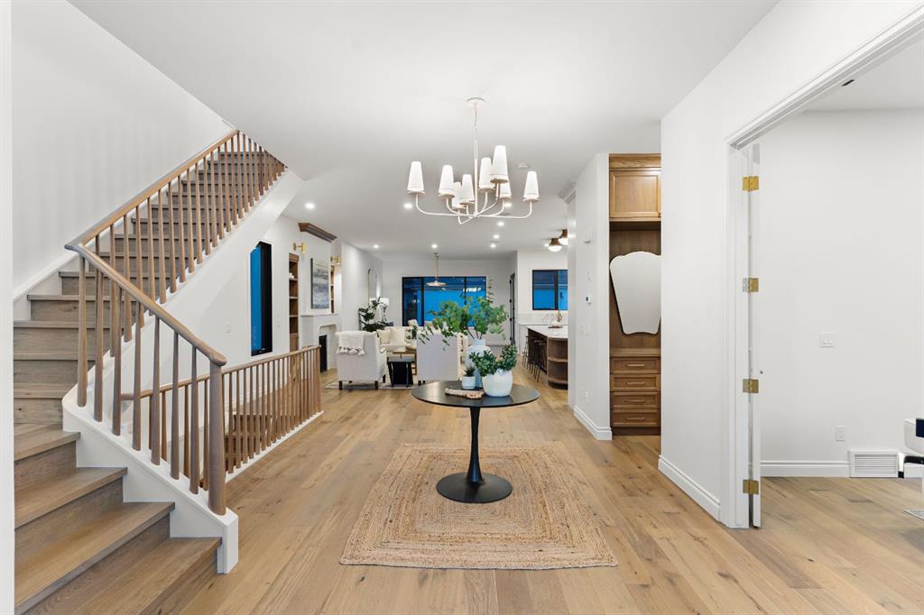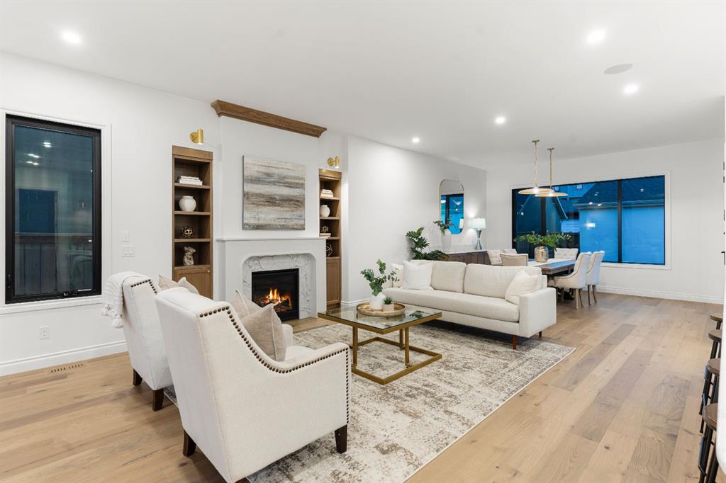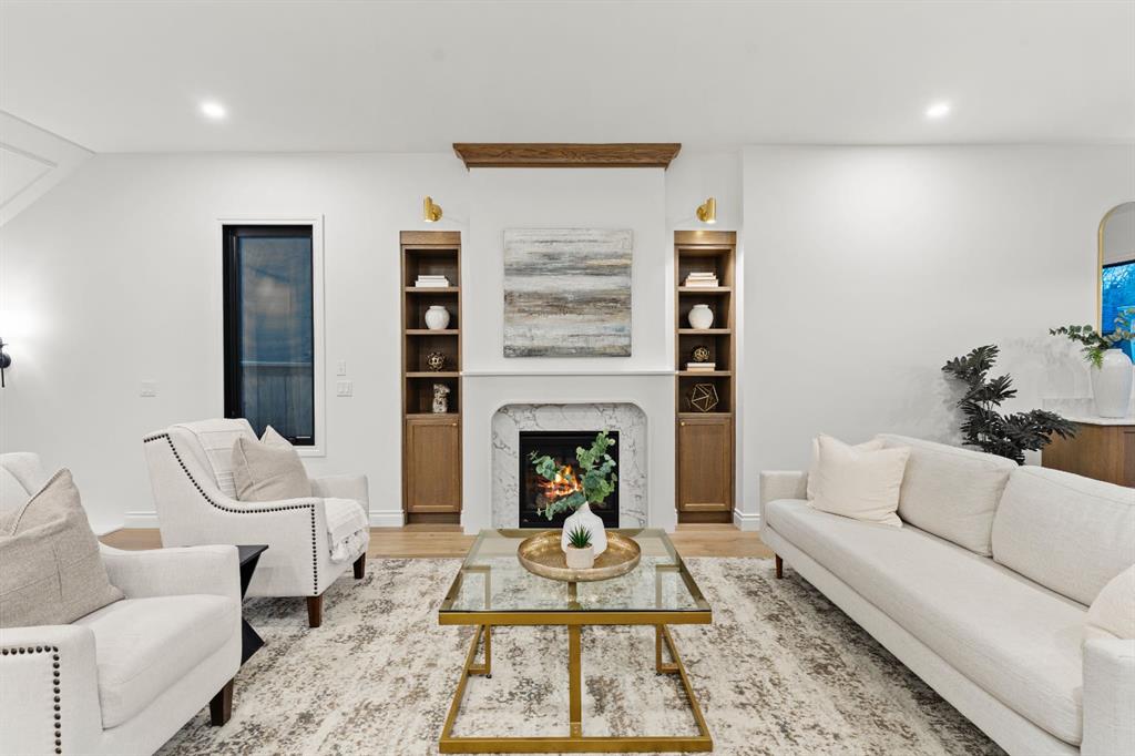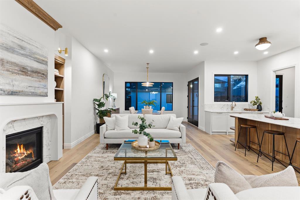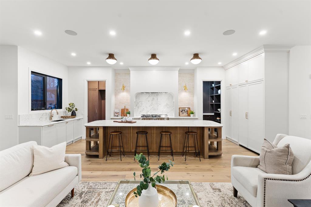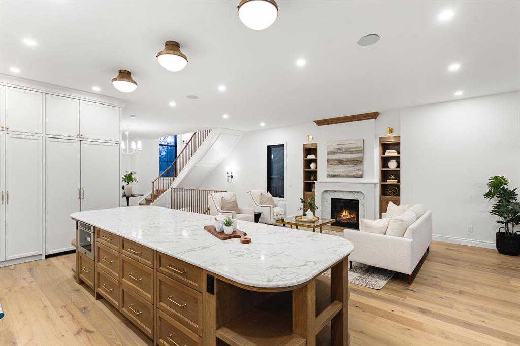 Welcome to The Bardot, an architectural masterpiece that seamlessly blends French cottage elegance with modern luxury in Calgary’s highly desirable Marda Loop. Thoughtfully crafted by Cedar Rock Homes and curated by Aly Velji Designs, this bespoke residence offers four bedrooms, 4.5 bathrooms, and a triple-car garage. The exterior showcases a stunning fusion of stone, stucco, and Hardie panel, paired with an aluminum cedar soffit entry, custom aluminum Lux windows, and a striking front entry door. A private backyard enhances the tranquility of the large composite patio with aluminum glass railing, while the fully landscaped and fenced yard ensures low-maintenance outdoor enjoyment. Inside, 10’ ceilings on the main level and 9’ ceilings on the upper and lower floors create a sense of volume and sophistication. The wide plank white oak engineered hardwood flooring extends across all floors, all solid core doors, accentuated by custom site-built cabinetry with maple dovetail drawers and Blum hinges throughout. The heart of the home is the gourmet kitchen, appointed with a premium JennAir appliance package including a 48” gas range, 48” panelled refrigerator, panel-ready dishwasher, and an island microwave drawer. A curved quartz slab island, custom cabinetry, and a sculptural hood fan set the tone for a refined culinary space. A butler’s pantry with extended storage and designer lighting and plumbing fixtures, including Brizo and Delta finishes, enhances functionality and style, while the spacious dining room features a custom oak sideboard, functional spaces like the large mudroom, adorned with bespoke millwork. A cozy gas fireplace anchors the main floor living room, while the foyer leads to a beautifully designed home office complete with custom cabinetry with glass doors, French doors, and floor plugs. Upstairs, three bedrooms each offer their own walk-in closets and all ensuites with heated tile flooring. The luxurious primary suite features a vaulted ceiling and a spa-inspired ensuite with an oversized steam shower (two rain heads, and hand bar), a freestanding tub, solid slab stone backsplash, and custom hanging metal mirrors. A dedicated laundry room with washer, dryer, sink, rod, and cabinetry completes the upper level. The finished basement offers additional entertaining and lifestyle spaces with a gym room, TV/game area, a full bathroom, a wet bar with beverage fridge, and generous storage. Mechanically, the home is equipped with dual-zone 96% efficient furnaces with humidifiers, a heat recovery ventilator, automatic water shut-off valve, and rough-ins for in-floor basement heating, air conditioning, vacuum flow, speakers, a security system, and exterior cameras. Every inch of The Bardot speaks to quality, comfort, and timeless beauty. Located in a quiet pocket of Marda Loop just steps from trendy boutiques, restaurants, dog parks, schools, and minutes from downtown, this home is the perfect harmony of prestige and practicality. Book your showing today!