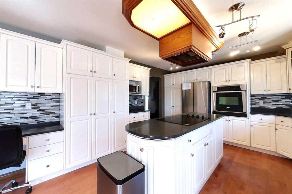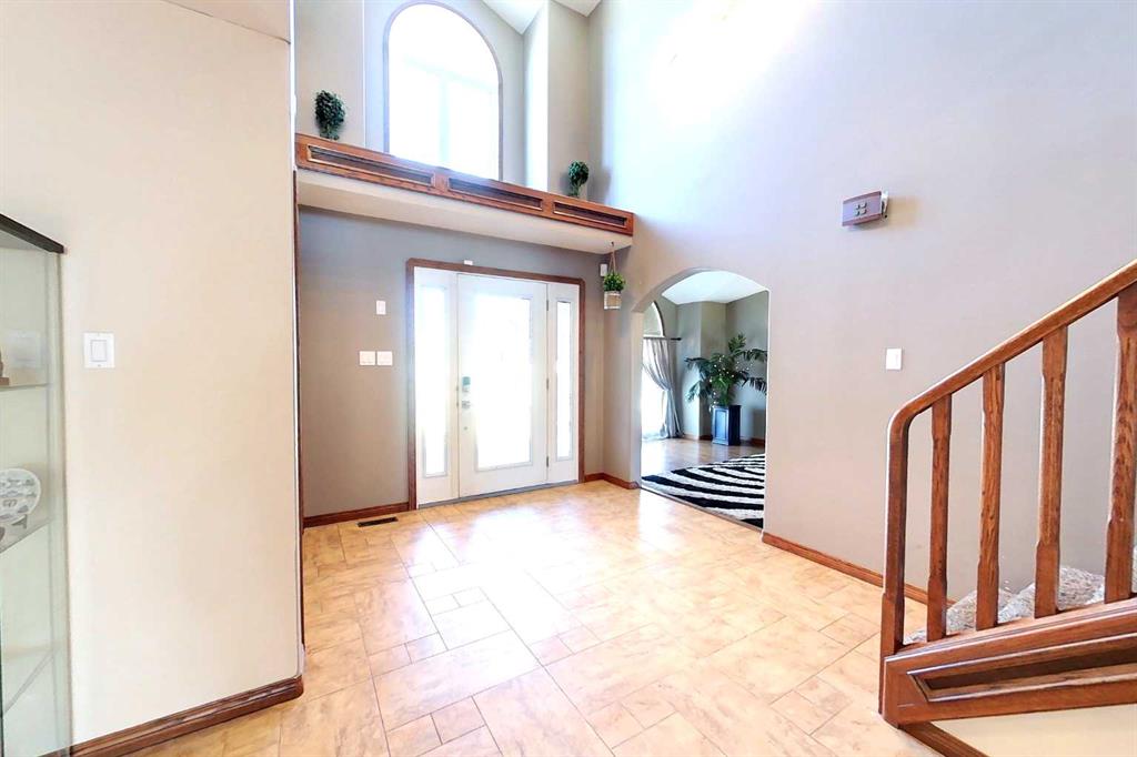 FANTASTIC SUBDIVISION for this executive 2 storey home, backing onto the Creek. Home is 2,591.89 sq ft plus a fully finished basement that features the 4th bedroom, a 3pc bath and a perfectly outfitted games room complete with the pool table & accessories. Going upstairs to the Main floor is a huge spacious entry way with an Amazing Front Door that speaks to the curb appeal! Main Floor laundry, a bedroom that could easily be a main floor office/workroom, 2pc bath, a sparkling white kitchen with stainless steel appliances, with a breakfast nook and family room. Also there is a formal dining area/living room complete this main floor. Upstairs you find the the Master suite that features a 5pc bath with his\\her sinks, a separate stand up shower and a jacuzzi tub plus 2 more bdrms & 4pc bath. Upgrades include- 2 furnaces Dec/24, HWT Dec/24, Flooring in kitchen & family room March/25, some cupboards & counter top Mar/25,cooktop, Apr/25 , fridge Apr/25, dishwasher & garburator, Apr/25, washer & dryer Apr/25. Outside you can\'t beat the yard that backs onto the green zone & fire pit area. Great family neighbourhood, yard & a stunning home!