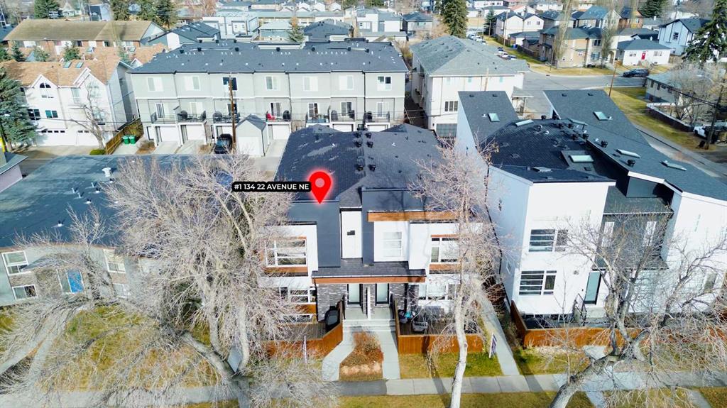 Open House! Saturday, November 15th, 2025, from 1:00 PM to 4:30 PM. Modern urban living in desirable Tuxedo Park – Welcome home to 1, 134 22 Ave NE! This 3-bedroom, 4-bathroom townhome is perfect for professionals, families, and pet owners, offering a private garage, fully fenced patio area, and 3 levels of thoughtfully designed living space. Showcasing high-end custom finishings & built-ins, including cozy gas fireplace, the main level is bright and open with beautiful hardwood flooring throughout. The gourmet kitchen features stainless steel appliances, custom cabinetry, quartz countertops, walk-in pantry & casual counter seating – perfect for everyday living & entertaining! Spacious living & dining areas and 2-piece bath complete the main level. Upstairs you will find 2 generously sized bedrooms including the primary bedroom with luxurious 5-piece ensuite bath and walk in closet with high-end custom built-ins. The second bedroom also features a 4-piece ensuite bath. Convenient upper level laundry makes laundry day easy! Downstairs, you will find the fully finished basement complete with recreation space, the 3rd bedroom, 4-piece bathroom, and a utility/storage space. Outdoors you will enjoy the quiet, tree-lined street, single detached garage and ample on-street parking. With a prime central location it\'s a walker\'s paradise—just steps from Rosso\'s coffee, Lina\'s Italian Market, Safeway and Coop, with easy access to an off-leash dog park and Confederation Park. Enjoy seamless connectivity to public transport, including the Max Green line, and major thoroughfares including Deerfoot Tr and 16 Ave, placing downtown and the airport within a 15-minute drive. This modern inner city townhome has everything you need and more – Book your viewing today!