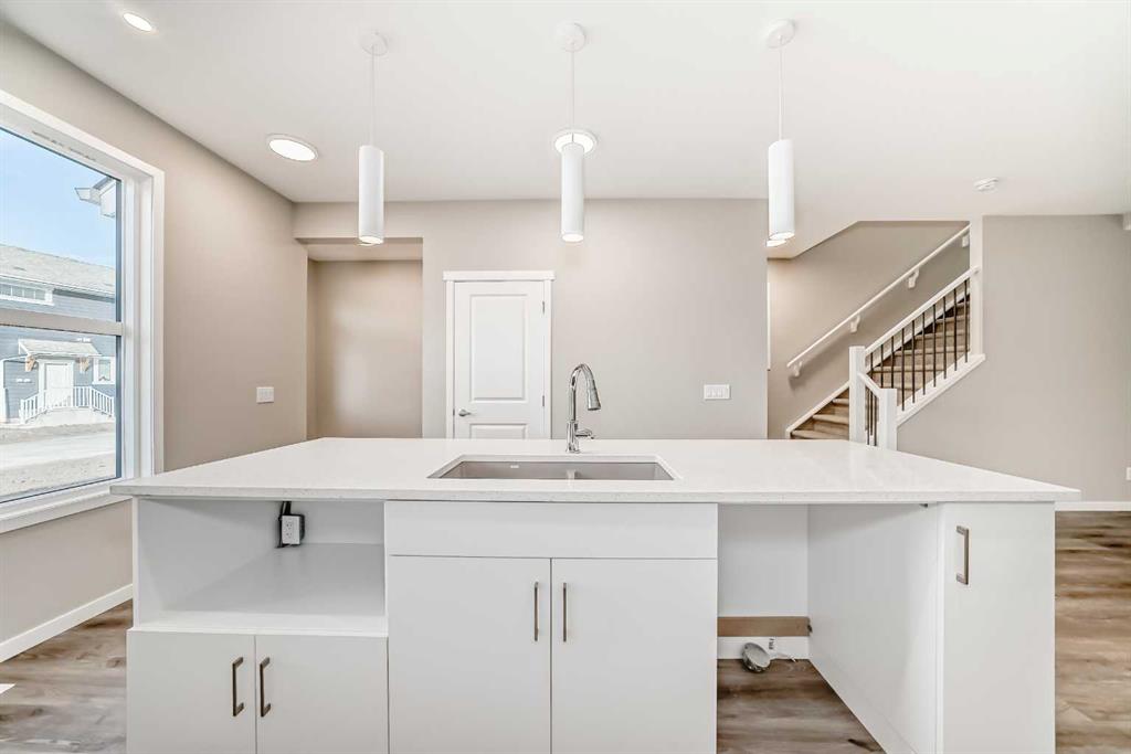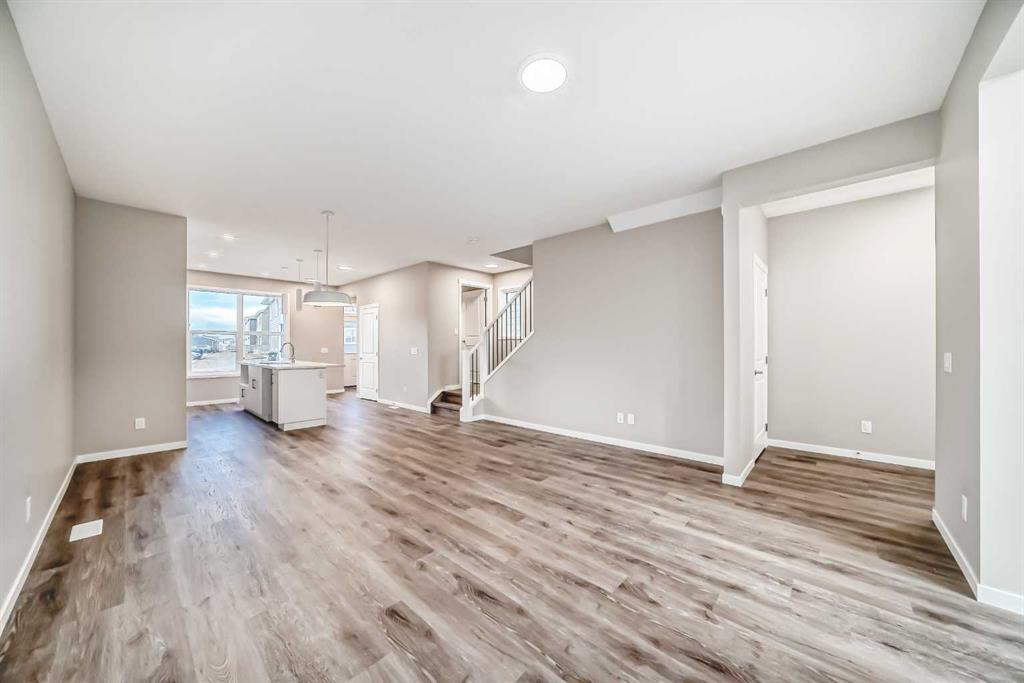 Meet the brand-new “Heath,” a fresh take on a beloved layout that blends smart design with everyday comfort. Step inside to a bright, open main floor finished in warm luxury vinyl plank, with a versatile front flex room that suits a home office, homework zone, or cozy reading spot. The rear of the home opens to an inviting living room and an oversized dining area—perfect for weeknight dinners and weekend gatherings alike. Anchoring the space, the chef’s kitchen showcases wood-grain cabinetry raised to the bulkhead, crisp white quartz counters, a classic subway tile backsplash that wraps the standalone hood fan, stainless steel appliances, and a large island that makes prep, snacks, and conversation effortless. A generous back window brings in natural light, and the practical rear entrance keeps daily comings and goings simple. Upstairs, a centrally located loft creates a true second living space and smart separation between the sleeping quarters. The spacious primary retreat features a walk-in closet and a spa-inspired 4-piece ensuite with dual sinks, while two additional bedrooms share a well-appointed 4-piece bath. The upper laundry room keeps chores convenient and out of sight. A side/secondary entrance adds flexibility for future possibilities such as a guest, in-law, or private living area (subject to city/municipal approvals and permitting). Outside, the landscaping is complete—front and back—so you can enjoy the space from day one. Expect finished sod, mulched side yards, and thoughtfully selected trees/shrubs in the front that complement the streetscape and elevate curb appeal. And the setting? You’re in Mahogany—Calgary’s four-season lake community—where life revolves around water, parks, and connection. Enjoy two residents-only beaches, the Beach Club, tennis and sport courts, winter skating, fishing, playgrounds, and more than 22 km of pathways and preserved wetlands. Stroll to the Village Market for cafés, restaurants, fitness, and daily essentials, with the South Health Campus and Seton Urban District just minutes away. From paddleboards to sunset walks, the Heath puts a resort-style lifestyle within easy reach.