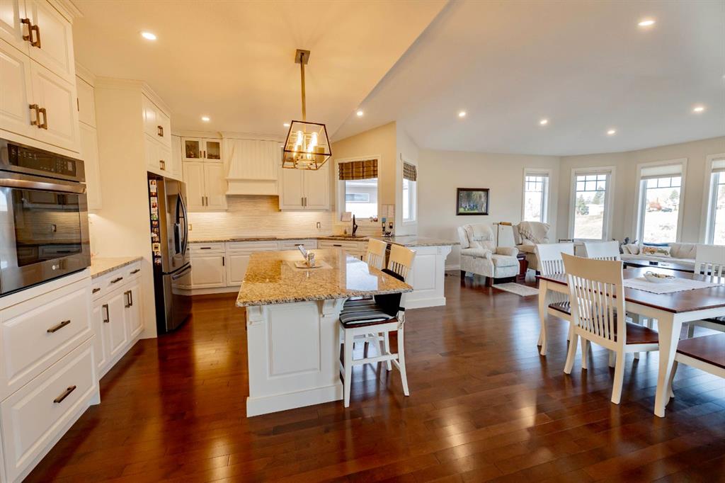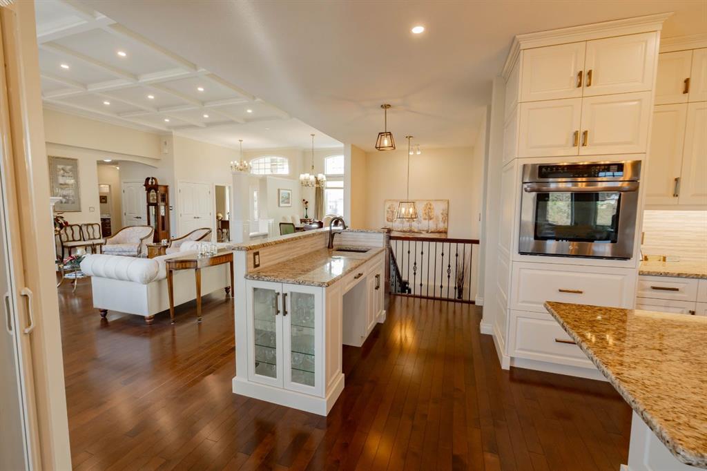 Discover refined living in this exceptional executive bungalow, perfectly situated in the sought-after Chinook Heights neighbourhood. Thoughtfully designed with exquisite finishes and generous spaces throughout, this home blends comfort, elegance, and functionality. The open-concept main floor is ideal for entertaining, featuring a custom chef’s kitchen with an island workspace, wet bar, breakfast room and formal dining area. The Kitchen is a custom Adora build with matching granite countertops throughout the home. Soaring coffered ceilings and impressive fireplaces create a warm, welcoming atmosphere, while oversized windows showcase stunning views of the coulees and walking paths. The blinds are all custom to the home and an additional luxury touch is that all the north facing windows are Triple Pane! No drafts and very nice for keeping it cozy inside. Speaking of cozy: the home features 4 area heating throughout! Set your desired temperature in each space and only heat what you need. Both the upstairs and downstairs living rooms feature a gorgeous gas fireplace for added ambiance and comfort. The fully developed walk-out basement includes a summer kitchen — offering flexibility for multi-generational living, guest accommodations, or caregiver support for aging in place. Each bedroom downstairs has their own full bathroom! Additional features include Maple Hardwood flooring, in-floor heating, a double attached garage with a spacious driveway and beautiful landscaping that complements the serene surroundings. Every detail has been carefully considered in this one-of-a-kind property, a true opportunity to enjoy executive living with the beauty of Lethbridge right outside your door.