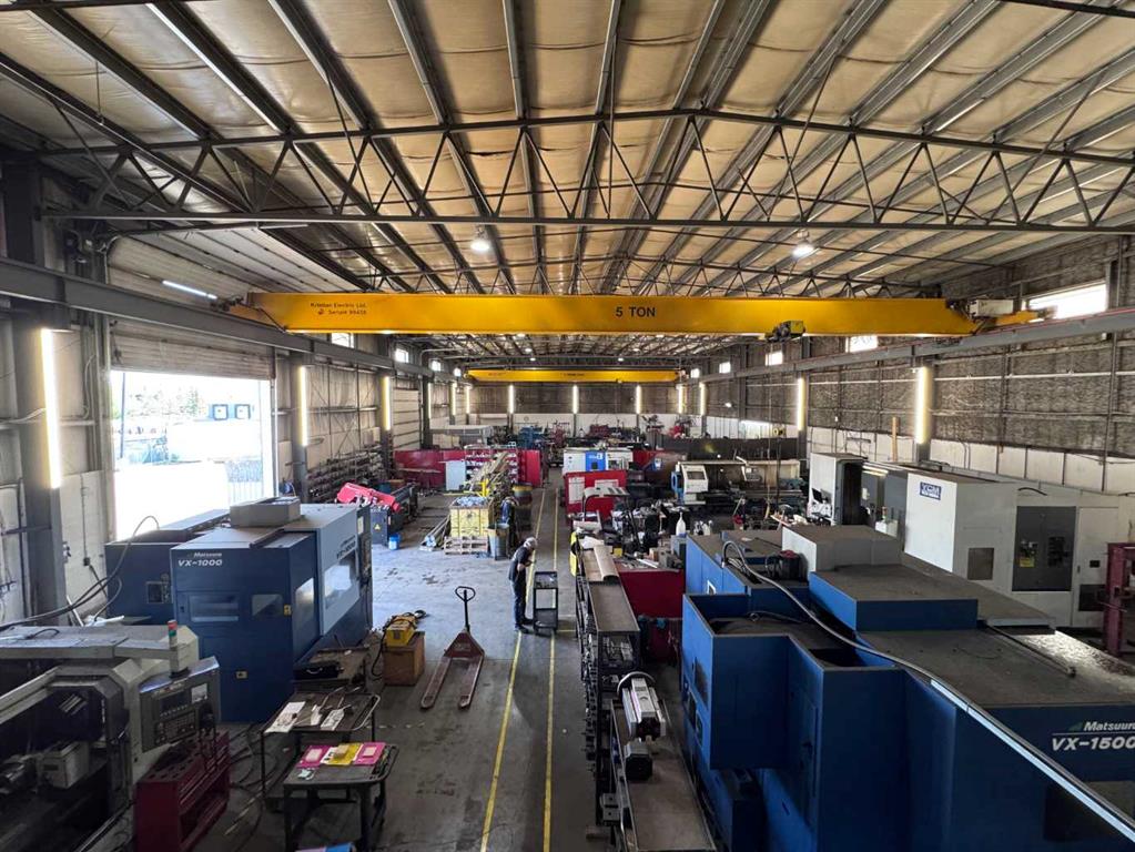 1,824 SF industrial unit with 1,680 SF warehouse, 144 SF office, and ±1,250 SF fenced yard. Includes shared 5-ton crane, 16’ x 16’ loading door, 400A/480V power, and Make-up air