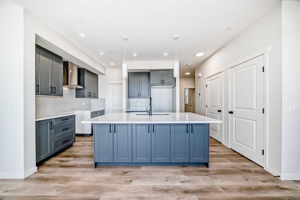 Welcome to the Kalara—where modern design, flexible living, and everyday functionality come together in one beautifully planned home—now on one of Hotchkiss’s largest pie-shaped lots with a sunny, private backyard and a true walkout lower level. A bright, open-concept main floor connects the kitchen, dining, and lifestyle areas, all oriented to capture natural light and backyard views. The kitchen is a standout with modern grey cabinetry to the bulkhead, black hardware, white quartz counters, a stacked subway tile backsplash, stainless steel appliances, and thoughtful touches like pot lighting and clever storage under the island’s bar seating. At the front, a main-floor bedroom can act a versatile flex room or is the perfect spot for guests or multi-generational living—complete with a cheater door to a full 3-piece bathroom. Upstairs, a central bonus room creates an ideal media zone or reading nook, while the upper-level laundry connects directly to the primary ensuite for seamless daily routines. The serene primary retreat is complemented by two additional bedrooms for family or guests. Set on a traditional (not zero-lot-line) lot, you’ll appreciate extra side-yard space and easier exterior access. Downstairs, the 9\' foundation and true walkout design unlock outstanding potential for future development—think expansive recreation space, additional bedrooms, or a bright lower-level suite configuration (subject to city/municipal approvals and permitting). With its balanced layout, quality finishes, rare lot size, and room to grow, this Kalara nails comfort, function, and long-term value. And of course, the Hotchkiss lifestyle Tucked in Calgary’s southeast with quick connections to Stoney Trail and Deerfoot, Hotchkiss offers a quiet, up-and-coming community feel with new parks, pathways, playgrounds, and wide-open prairie views. Everyday essentials, shopping, dining, and major services are a short drive away in nearby Seton and along 130th Avenue, with schools, recreation, and the South Health Campus comfortably within reach. If you’re after more space, modern design, and an easy commuter location—Hotchkiss delivers.