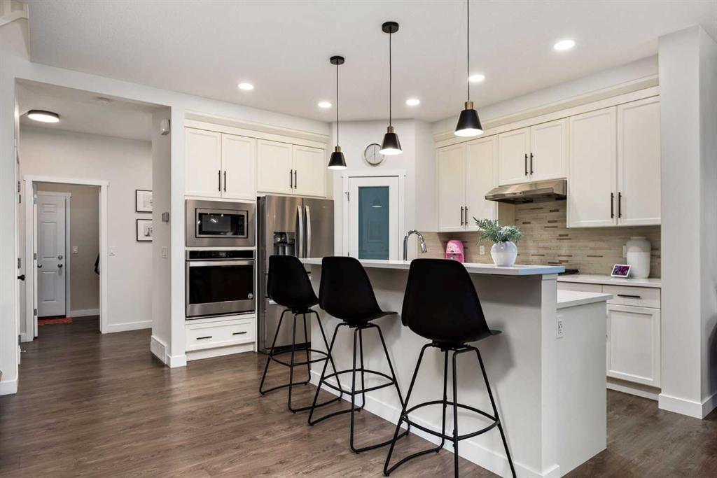 Welcome to 196 Belmont Terrace SW, a stunning front-attached garage home with a legal suite and countless upgrades. Offering over 2,600 sq. ft. of stylish, functional living space, this 5-bedroom, 3.5-bath property combines comfort, versatility, and income potential in one of Belmont’s most desirable locations. The main level features luxury vinyl plank flooring, fresh paint (2024), all-new designer light fixtures (2024), and a bright open-concept layout with a chef-inspired kitchen showcasing quartz countertops, full-height cabinetry, premium stainless steel appliances including a gas cooktop, and a large island with bar seating. The inviting living room with an electric fireplace and the elegant dining area flow seamlessly to the backyard and composite deck, perfect for entertaining. Upstairs offers three generous bedrooms including a spacious primary retreat with a walk-in closet and spa-like ensuite with quartz dual vanities, a soaker tub, and a glass-enclosed shower, plus a bonus room, laundry room, and full bath. The fully developed legal basement suite, complete with its own entrance, modern kitchen, stainless steel appliances, luxury vinyl plank flooring, and quartz finishes, can function as a profitable two-bedroom rental or as a fully licensed dayhome in accordance with current regulations—both highly sought-after options given its location backing directly onto a playground. Additional 2024 upgrades include central air conditioning, Gemstone permanent exterior lighting, and fresh modern paint throughout. With a double attached garage, elegant curb appeal, and proximity to parks, schools, shopping, dining, and transit, this beautifully maintained home is ideal for multi-generational living, investment, or simply enjoying the best of Belmont. Book your private showing today!