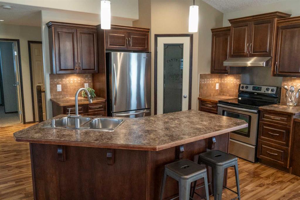 This bungalow was built in 2009 and is an open-concept home featuring vaulted ceilings, a spacious double garage, and great curb appeal. The main floor laundry, two generous bedrooms, and a primary suite with a walk-through closet and 3-piece ensuite make day-to-day living easy. The unfinished basement offers room to grow, with framing, electrical, and lighting rough-ins already completed and permitted.