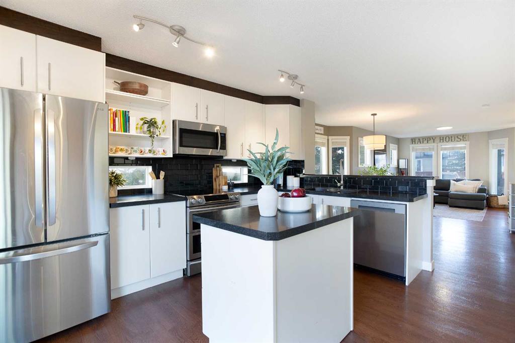 **** OPEN HOUSE SUNDAY NOVEMBER 16TH - 2:00 PM - 4:00 PM **** Prepare to be captivated by this extraordinary End Unit townhome within the Zen complex, in the highly sought-after Kings Heights community! With a highly functional layout offering sophisticated style, this home spans over 1,900 total square feet across three meticulously finished levels, perfectly designed for modern living. Stepping inside, the main floor immediately welcomes you into a bright, open-concept sanctuary. This thoughtfully designed layout is bathed in natural light, anchored by beautiful warm laminate flooring and finished in soothing, designer-selected neutral tones. The living area is instantly inviting, featuring a cozy gas fireplace before flowing effortlessly into the generous dining space—an ideal setting for both entertaining and daily enjoyment. Adjacent to this is the gourmet kitchen, a chef\'s delight showcasing luxurious granite countertops with an elegant tile backsplash, an island with extra storage, convenient breakfast bar, plus a large pantry. Completing this level is a chic two-piece guest powder room. Ascending to the upper floor, you discover the ultimate in privacy: the highly sought-after dual primary suite configuration. Both oversized bedrooms serve as tranquil retreats, each thoughtfully paired with its own private, full ensuite bathroom. The fully developed lower level offers yet more versatile space, finished with plush carpeting. This basement oasis includes a sizeable recreation room, a third sizable bedroom, and a four-piece bathroom. Outside, enjoy the priceless benefit of a private, fenced, west-facing backyard—a sun-drenched haven that’s perfect for pets and outdoor relaxation. Adding to the convenience, this premium property includes an incredible three dedicated titled parking stalls (two reserved stalls right out front and one nearby stall! Location truly sets this home apart, as you are just minutes from King\'s Market shopping center, the retail haven Cross Iron Mills, top-rated schools, and enjoy lightning-fast access to Deerfoot Trail. This isn\'t just a home; it\'s a lifestyle upgrade. Don\'t miss the chance to own this premium property—schedule your exclusive viewing today!