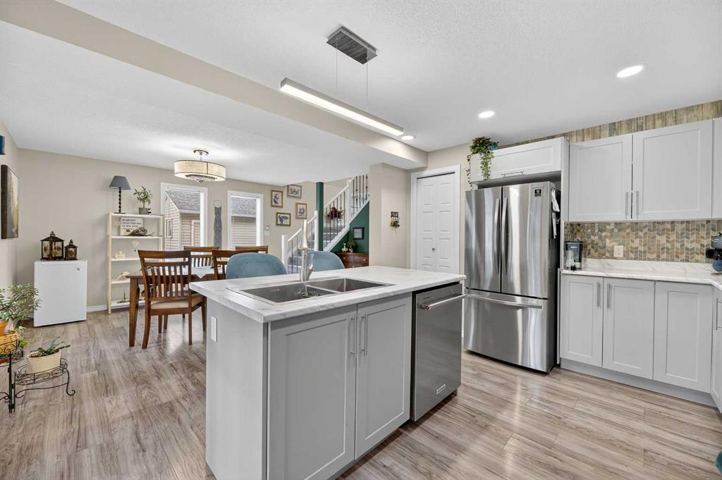 THIS COULD BE YOUR NEXT HOME!! And it is in one of the best locations in Didsbury! This 2 story home was recently STRIPPED DOWN TO THE STUDS AND TOTALLY REBUILT; it has been extensively renovated and has a very functional, unique floorplan. The main level has a spacious kitchen with lots of cabinetry, island with eating bar and a nicely tiled backsplash. There is an adjacent dining room that leads out to a VERY PRIVATE COVERED VERANDA which is like another living space outdoors. On the main there is also a large living room, bathroom, laundry and utility closet. Head upstairs and you will find a large primary bedroom with a HUGE walk in closet, two secondary bedrooms and a full bath. Although there is not a full basement in this home you will find that it really is not needed and is actually a nice feature because it means less \'stuff\' to deal with. There is also a newer rubber roof, furnace and hot water tank so all of the big ticket items are done. Head outside and you will appreciate that this home is on a large 65X110 lot and has a private, fenced yard with that covered veranda-this is a peaceful, serene spot to enjoy the day. There is a double garage insulated with electric heat, a shed and a large concrete parking pad so lots of space for all the toys here. Close to the golf course and playground, this home is located on one of the quietest streets in town. This home is immaculately clean and superbly updated/maintained. It is move in ready and waiting for it\'s next family to appreciate all this home has to offer! Call today to book your viewing!