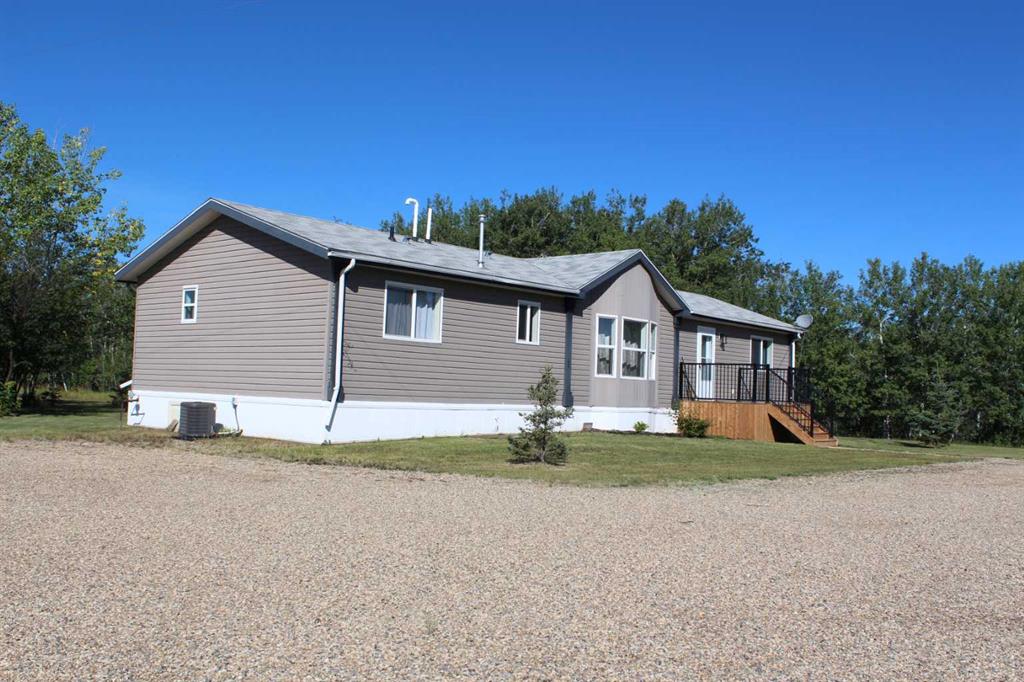 Nestled near the riverbanks with a perfect view overlooking the picturesque River Valley, this charming three-bedroom, two-bathroom modular home offers a wonderful blend of space, comfort, and functionality. As you step inside, you are welcomed by a large entryway that opens into a spacious living room featuring a vaulted ceilings – an ideal space to relax, entertain and create lasting memories. Flowing seamlessly from the living area is a bright kitchen with a large island, connected to a cozy dining area that creates a warm and inviting atmosphere. The open floor plan, combined with large windows, fills the home with natural light. French doors off the dinette lead to a covered rear deck - perfect for unwinding while enjoying views of the spacious, tree-lined backyard that offers both beauty and privacy. The expansive primary bedroom comfortably fits a king-size bed and boasts a luxurious five-piece ensuite and a roomy walk-in closet. Two additional generously sized bedrooms provide ample space for family or guests, while a secondary living area offers flexibility to serve as a playroom, family room, or home office - whatever suits your lifestyle. Comfort is ensured year-round with central air conditioning and heating. Recent updates include newly built front and back decks, a graveled yard, and the added luxury of a co-op water system. A heated double-car garage and a large tin-clad cold storage shop provide plenty of space to keep your vehicles and belongings protected from the elements. Located just three minutes southwest of Manning, Alberta, this home offers both tranquility and convenience. Call today to schedule your viewing before it is gone!