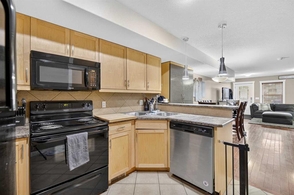 THIS COULD BE YOUR NEXT HOME!! If you are looking for an affordable, modern and ready to move into home in Didsbury check out this townhouse! You will appreciate it is on a quiet street and has an attached single garage. Inside you will find an open floor plan and spacious main and upper levels that will accommodate your family. The main has an open kitchen with nice wood cabinets, tiled backsplash/floors, black appliances and lots of space to create that next meal. There is also a dining area, living room and half bath. Head upstairs and you will find a large primary bedroom with 4 pc ensuite, 2 secondary bedrooms, laundry closet and a full bathroom. The basement is partially finished but has more space that could be used as a gym or a family room. This home has a front porch-a great place to relax, and aggregate sidewalks; you will also appreciate that this home does have great curb appeal. Call today to book a viewing!