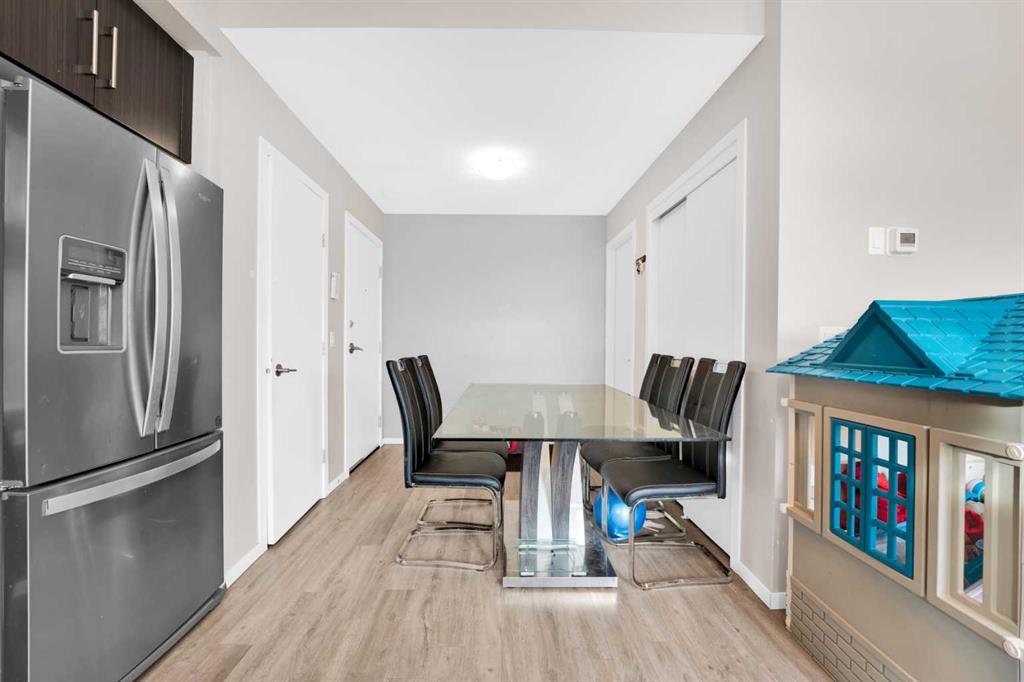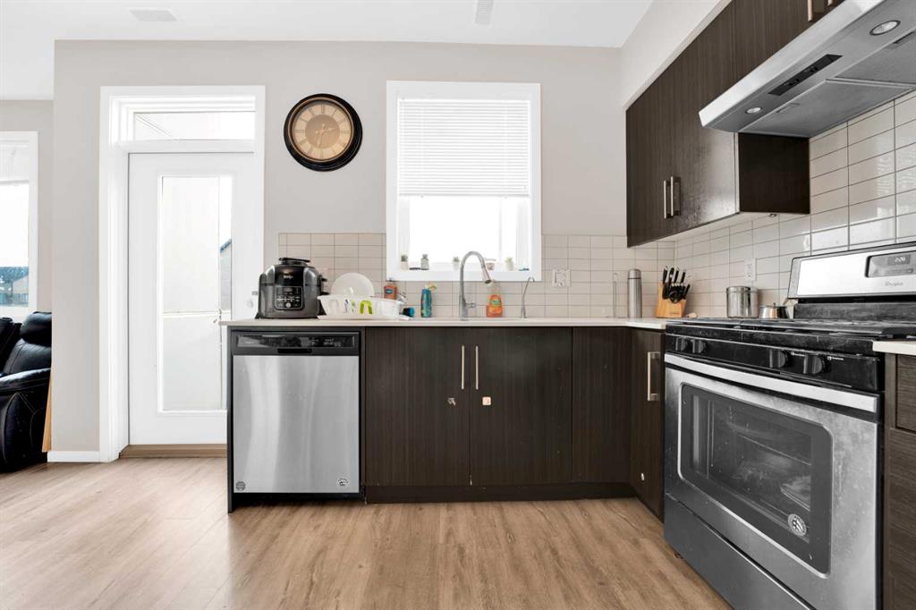Welcome Home to #202, 135 Redstone Walk, Calgary. Imagine stepping into a home where modern elegance meets unparalleled comfort. Nestled in the vibrant community of Redstone, this stunning end unit, built in 2018, is one of the last to be completed in the complex, offering exclusivity and a fresh start in a lightly lived in home. As you enter, you\'re greeted by an open-concept main floor that radiates warmth and sophistication. The kitchen, a chef’s delight, is bright and airy with ample cupboard space, stainless steel appliances, and modern finishes. Espresso cabinetry paired with a pristine subway tile backsplash and polished quartz countertops create a space that is both functional and beautiful. Picture yourself preparing a gourmet meal in this stylish setting, with every detail designed for both convenience and aesthetics. The kitchen flows seamlessly into the inviting living area, perfect for cozying up with a movie after a delightful dinner. The natural light pouring in through the large windows enhances the sense of space and comfort, making every moment spent here feel special. Venture upstairs to find 3 spacious bedrooms, one 4-piece washroom and laundry. The property also features a large, double attached tandem garage, providing ample space for your vehicles and storage needs, ensuring everything has its place.