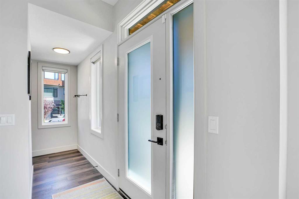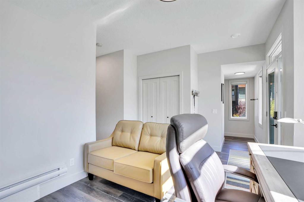 Your EXTRAORDINARY LIFESTYLE in The Ravines awaits! This very special unit has everything you are looking for! Start with the great interior location FACING GREENSPACE, where you can enjoy your morning coffee elevated amongst the gardens of the LOWER COVERED PATIO, or from your UPPER COVERED DECK. The entry level has a fantastic FLEX space - great for a HOME OFFICE, den or workout space with large window, storage, w/direct entry to your single ATTACHED garage (11\'3x20\'7). LOADS of storage including double closet and NEW Storage room (6\'8x3\'4) GREAT spot for your BIKE or seasonal decorations. SINGLE LEVEL LIVING is what the main floorplan offers - OPEN CONCEPT Kitchen/living/dining with tall ceilings and oversized triple pane windows to VIEW of the PRIVATE GREENBELT within this exclusive complex. Living room features MODERN electric FIREPLACE & VINYL PLANK flooring w/full glass door to upper deck, where you have plenty of room for BBQ (w/GAS LINE)& lighting, for relaxing or entertaining. Kitchen exceeds expectations with UPGRADED appliance package, QUARTZ countertop, room for stools, filtered water, LOADS OF STORAGE. PRIMARY bedroom with windows on two sides enjoying corner natural light, with cheater ensuite door to 4-pc bathroom. 2nd bedroom has room for queen bed. Laundry conveniently located on this level. CENTRAL AC keeps you cool all summer long. This unit is designed for all ages looking for LOW MAINTENANCE lifestyle in a well-built JANSSEN HOME, steps to walking paths and LRT, short drive to shopping, restaurants and Stoney Trail. The most AFFORDABLE unit in the complex!