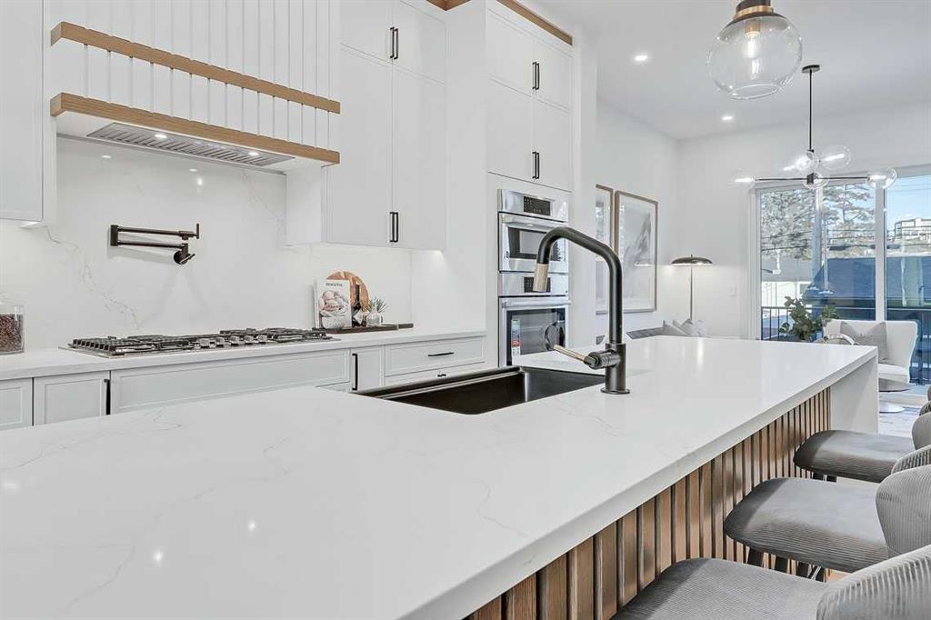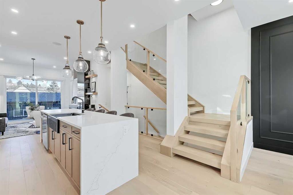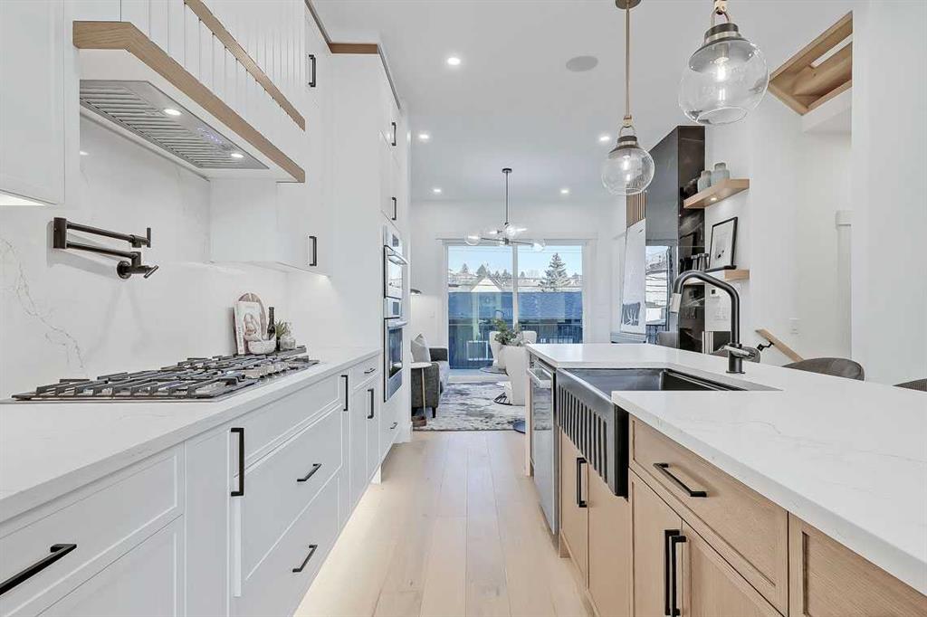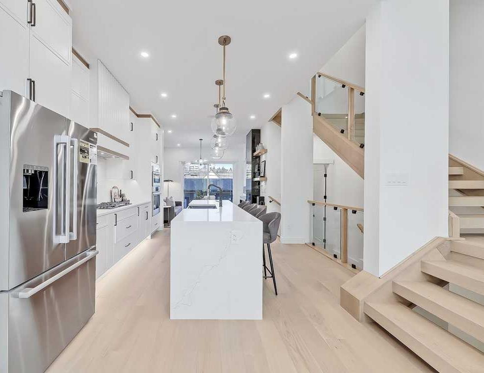 MOVE-IN READY IN BRIDGELAND! This exceptional semi-detached home complete with a third-floor loft & balcony, an expansive primary retreat, 2 junior suites, and a fully developed basement—is designed to impress even the most discerning buyer. With its striking curb appeal and thoughtfully curated interior, every inch of this modern residence exudes comfort, sophistication, and high-end craftsmanship. The main floor sets the tone with wide-plank engineered white oak flooring & 10-ft ceilings. At the heart of the home lies the chef-inspired kitchen, centered around a large island and outfitted with premium appliances, including a gas cooktop, French-door fridge, built-in wall oven & the added luxury of a pot filler. A full-height Quartz backsplash & custom cabinetry create a sleek, modern aesthetic, while a built-in pantry ensures abundant storage. At the front of the home, the bright dining room is framed by ceiling-height panelled windows and anchored by a designer chandelier. The inviting great room provides a warm, stylish space to unwind, featuring an inset fireplace with custom millwork and oversized sliding patio doors opening onto the back deck. A well-designed rear mudroom with built-ins and a chic powder room complete this level. Upstairs, the primary suite spans nearly half the floor, offering a true luxury retreat. Enjoy abundant natural light, walk-in closet, and a serene 5-pc ensuite w/ heated tile floors, double vanity, freestanding soaker tub, and oversized glass shower. The JR. suite (OR flexible work/den area) also impresses, complete with its own custom closet, private 4-pc bath, and soaring 12-ft ceiling with full-height windows. The third-floor loft adds incredible versatility—perfect for older kids, guests, a home office, or a peaceful private getaway. A second JR. suite w/ full 4-pc bathroom sits nearby for added convenience. The loft’s bonus room opens onto a spacious balcony, ideal for morning coffee, summer evenings, or enjoying the charm of the neighbourhood. Additional living space continues in the fully developed basement, offering comfort & functionality with a large rec room with a dedicated TV area, a stylish wet bar, fourth bedroom, and another full 4-pc bathroom—perfect for hosting, relaxing, or extended-stay guests. What truly elevates this home is its unbeatable Bridgeland location. This highly desirable inner-city community is known for its vibrant local businesses, cafés, restaurants, parks, and quick access to downtown. You’re steps from Murdoch Park, with easy access to the Bow River Pathway system. Tom Campbell’s Hill Natural Park and Off-Leash Area are just a short 15-minute walk away and the sought after DELTA WEST ACADEMY is just around the corner! Despite the central setting, the home sits on a quiet street, offering a peaceful urban lifestyle without sacrificing convenience. Stylish, modern, and exceptionally located—this is the ideal home for families, professionals, or anyone seeking refined inner-city living!
