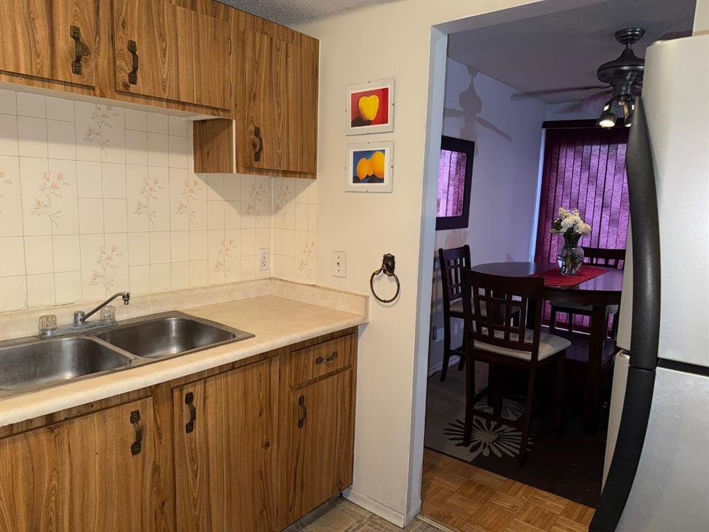 Welcome to this well-located and affordable 2-bedroom townhome in the desirable RUNDLEMERE GREEN condominium complex! As you enter, you are greeted by a welcoming foyer with a convenient closet that helps keep the space tidy and organized. Upstairs, the main floor features hardwood floors throughout a spacious living room complete with a cozy wood-burning fireplace adding a warm touch to this area. The adjoining dining area is bright and inviting, with sliding patio doors leading to a south-facing balcony that brings in beautiful natural light throughout the day. The kitchen is equipped with stainless steel appliances and a good layout for functionality. Just off the kitchen, you will find the utility room with the laundry room, plus extra space for storage. The third level offers a good sized primary bedroom with a large walk-in closet, a comfortable second bedroom, and a full 4-piece bathroom. This home offers 1,030 SqFt of thoughtfully living space and is ideal as a starter home or investment property. Additional highlights include: Low condo fees that cover water, sewer, and regular maintenance, one assigned parking stall (#38), south-facing balcony for all-day sunlight and prime location just steps to schools, parks, Rundle LRT Station, Sunridge Mall, Peter Lougheed Hospital, Superstore, restaurants, and more! This home is full of potential and ready for its next chapter. Don’t miss this fantastic opportunity!