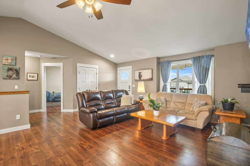 This family-friendly bungalow features 3 bedrooms and 2 bathrooms, offering 1,342 square feet of comfortable living space. The open-concept design boasts vaulted ceilings, warm hardwood floors sprawl throughout the main floor. Large windows that flood the home with natural light. The kitchen is equipped with ample cabinetry, a spacious island, and sleek appliances. The master suite is a private retreat with a 4-piece ensuite and a walk-in closet. Two additional bedrooms and another 4-piece bathroom complete the main level. The basement is an unfinished canvas with roughed-in in-floor heating, ready for your personal touch. Outside, enjoy the back deck overlooking a partially fenced, landscaped yard, and a newly completed detached garage with space for RV parking.