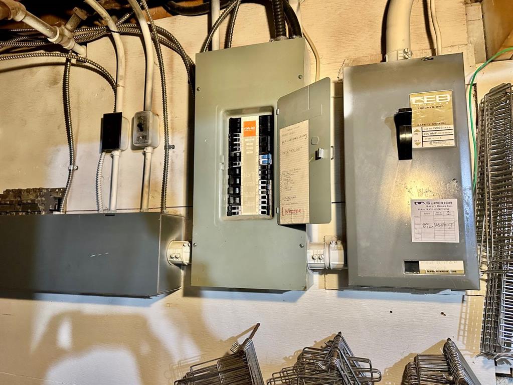 Updates and features include a membrane roof installed in 2013, ribbed metal cladding on the front of the building, 4 forced-air furnaces, a 40-gallon hot water tank, and 200-amp electrical service.