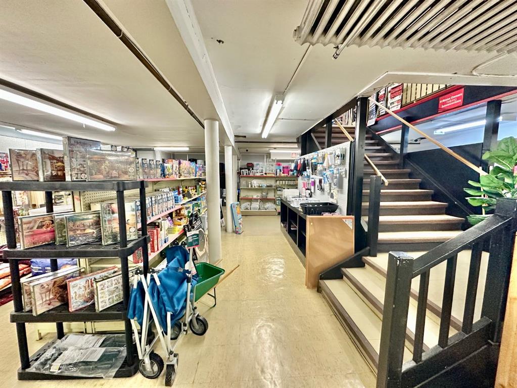 Inside, the main level features a large open retail display area, office, storage room and a 2pce bathroom. The lower level offers additional retail display space, a utility and storage areas and a second 2pce bathroom. The rear warehouse includes an ideal inventory storage area along with two more offices, one currently serving as a lunchroom.