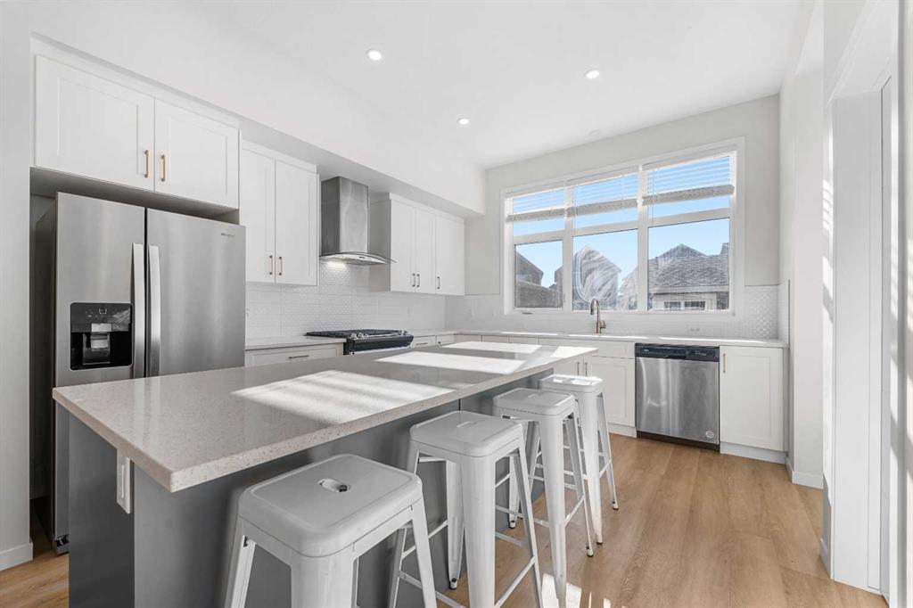 Welcome to Mahogany, Calgary’s premier 4-season lake community! This like-new, move-in ready home offers over 2,510 sq. ft. of total developed living space, highlighted by a 2-bedroom, 2-bathroom LEGAL SUITE designed for extra income or extended family. The main floor features a bright open-concept layout, soaring ceilings, 8-ft doors, and contemporary finishes throughout. A beautifully appointed two-toned kitchen showcases quartz countertops, stainless steel appliances, a trendy white tile backsplash, and a large central island perfect for gatherings. The spacious living room centers around a sleek modern tiled fireplace, while a bedroom on the main floor with a full bathroom offers versatility for guests, home office, or multi-generational living. Upstairs, you’ll find a bonus room, 3 generous bedrooms, and 2 full bathrooms, including a serene primary retreat with private ensuite. The legal basement suite is a standout feature — complete with its own entrance, separate furnace and laundry, 2 bedrooms, 2 full bathrooms, and a modern kitchen with high-end finishes. Perfect for generating income while maintaining privacy and comfort on both levels. Outside, this home is fully landscaped front and back, with a south-facing yard ideal for enjoying sunny afternoons, plus a double detached garage for convenience. Additional upgrades include central air conditioning, low-maintenance yard design, and clean, neutral tones throughout that complement any style. Located directly across from a beautiful green space and park, this home offers incredible value. Enjoy all that Mahogany has to offer — lake access, beaches, skating, schools, shops, restaurants, and the South Health Campus just minutes away. Whether you’re looking to invest or move right in, this Mahogany home is a true turnkey opportunity. Schedule your private showing today and see why this home stands out in one of Calgary’s most desirable lake communities!