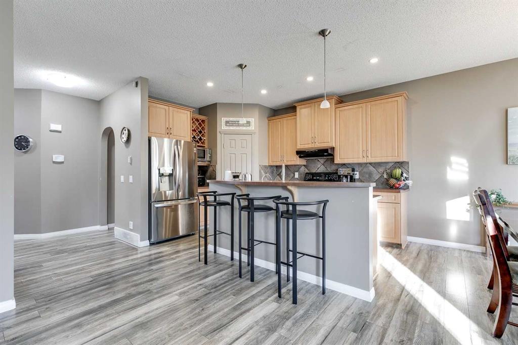 **Open House Saturday Nov 15, 12-3pm**Welcome home to this charming, country-style family 2-storey in beautiful Rocky Ridge, where memories come alive and pride of ownership shines throughout. With over 2,700 sq.ft. of developed living space, this move-in ready home offers 3 bedrooms up + 1 down and is ready just in time for the holidays! The main level features easy-care laminate flooring throughout, a bright and functional chef’s kitchen with breakfast bar island and corner pantry, and a cozy living room with gas fireplace — perfect for family gatherings. The dining area opens to a two-tiered south-facing deck, ideal for entertaining or relaxing on warm evenings. Upstairs, the spacious primary retreat easily fits a king bed and includes a spa-inspired ensuite with soaker tub, separate shower, and walk-in closet. Two additional bedrooms, a full 4-pc bath, upper laundry, and a flex/den space complete the level. The fully finished basement adds a 4th bedroom, 3-pc bath, and large recreation room for movie or game nights. This home comes equipped with air conditioning and underground sprinklers, along with numerous updates: new washer and dryer, new fridge, 4 newer windows, hot water tank (2020), roof (2019), and an updated deck. The beautifully landscaped south-facing backyard offers mature trees for privacy, while the front porch and tranquil pond feature create a peaceful spot for your morning coffee. Ideally located in family-friendly Rocky Ridge, you’re close to parks, playgrounds, top-rated schools, the Shane Homes YMCA, C-Train station, shopping, and restaurants. Enjoy an easy 30-minute commute to downtown or a quick weekend escape with the mountains less than an hour away. This is the Rocky Ridge family gem you’ve been waiting for, full of charm, beautifully cared for, and ready to move in before Christmas! Call your favourite Realtor today and book your private showing.