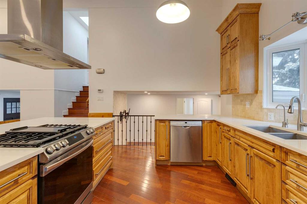 Welcome to this stunning detached home nestled in the family-friendly neighborhood of Charleswood, where mature trees and excellent amenities create a welcoming atmosphere. Boasting over 2,400 sqft of developed living space, this residence sits on an extra-large lot with a perfect slope for future walkout development, making it an ideal investment opportunity. As you enter, you\'re greeted by a spacious foyer and beautiful stairs leading to the main level. The main floor features HARWOOD FLOORING throughout, creating a warm and inviting ambiance. The bright living area showcases a VAULTED CEILING, a large kitchen with a kitchen island, and NEWER STAINLESS STEEL APPLIANCES, complemented by NEW CABINETS and QUARTZ COUNTERTOPS. The living room is enhanced by a NEWLY INSTALLED GAS FIREPLACE surrounded by a stunning stone backsplash, while the large dining area opens up to a generous deck, perfect for outdoor entertaining. Also on the main level, you\'ll find a cozy family room with access to the mudroom, a large office that can double as a game room for kids, and a 2-PIECE UPGRADED POWDER ROOM. The