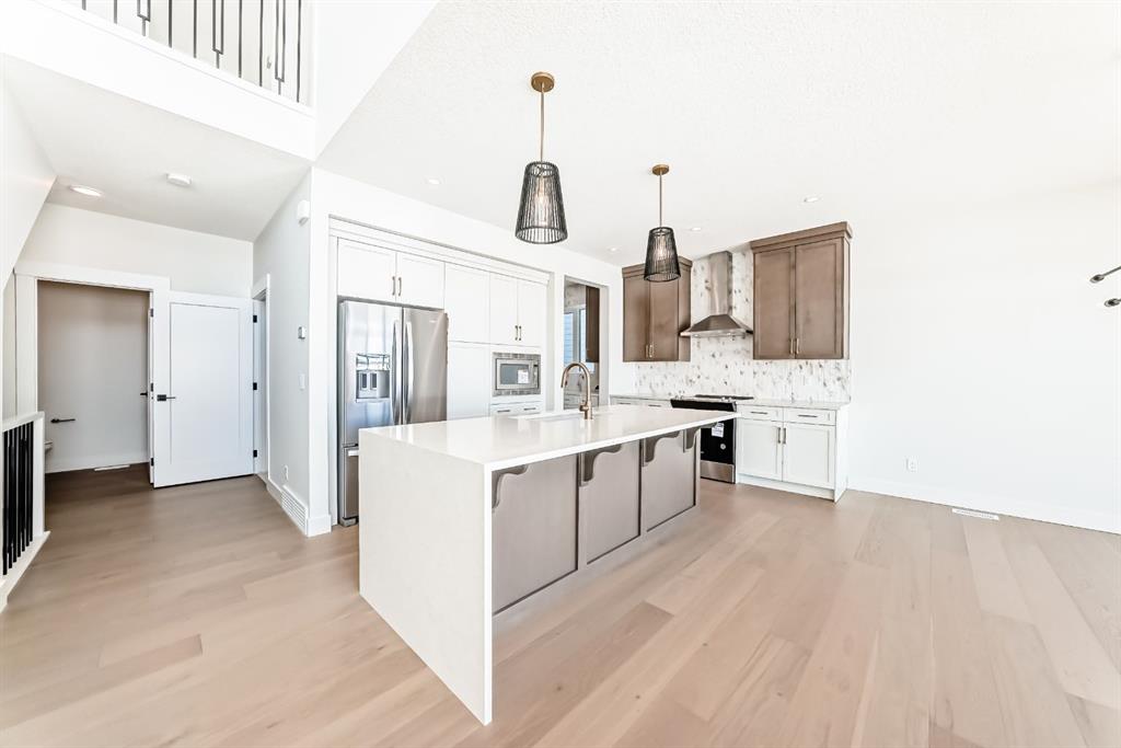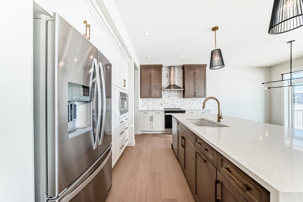Introducing ECO-PATH by Morrison Homes, your trusted custom home builder is at the forefront of eco-friendly NET ZERO home construction. This ESTATE home is built with high performance insulation, energy efficient windows and advanced HVAC systems to minimize energy consumption. Solar panels and Energy Star appliances further reduce the carbon footprint, while low flow fixtures conserve water. Morrison Homes also prioritizes the use of sustainable, non-toxic building materials, such as recycled wood and low VOC paints, ensuring a healthier indoor environment. Incorporating Smart Home Technology, this home optimizes energy use, providing both comfort and environmental stewardship. * Efficient Electric Heat Pump for Heating & Cooling * 36 Solar Panels to Generate Electricity * R60 Attic Insulation to Reduce Energy Loss * Air Barrier to Improve Homes Energy Retention * Triple Pane Argon Filled Windows with Sunstop Coating * 80 Gallon Heat Pump Hot Water Tank * Heat Recovery Ventilator to Minimize Heat Loss * XPS Rigid Insulation Beneath Basement Foundation * Enjoy the award winning Ellsworth model featuring over 2700 square feet of perfectly planned living space. Enter the home to a sun filled, main floor den which is open to a gorgeous living space with floor to ceiling windows and a soaring 18\' open to above. More natural light to be enjoyed with 3 panel sliding door to the South backyard and deck. The kitchen is a warm and inviting space with crafted cabinets, waterfall stone counter on the island and rich Champagne Bronze hardware. Flow through to the servery/beverage centre to the spacious pantry. The large mudroom with closet is a space where everyone can easily walk in from the Triple attached garage. Upstairs features beautiful open loft to soak up all the natural sunlight, a large laundry room with storage cabinets and 2 folding counters, 2 great sized bedrooms...one with a vaulted ceiling and one with a walk in closet. The primary bedroom is perfectly sized and comes fitted with a custom tiled shower, stand alone tub, 2 separate vanities and a sizeable walk in closet. The basement is a blank slate for future development. Live in and create your Legacy! Built on a premium lot, walk to the Pine Creek Ridge, minutes away from shopping, schools, parks and playgrounds - this community has it all.