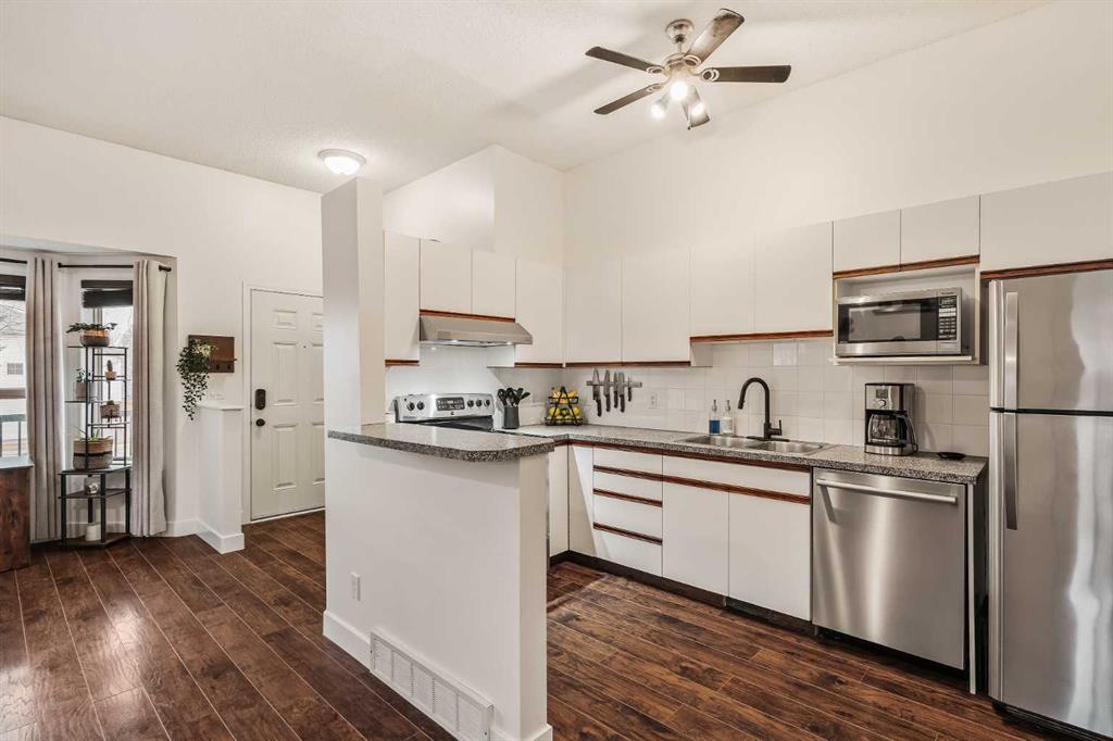 Welcome to this beautifully updated 4-level split townhouse in the established community of Hidden Valley. Offering over 1,500 sq. ft. of developed living space, this home features 2 bedrooms, 2 full bathrooms, and a bright, versatile layout designed for functional living. Enjoy fresh paint, new flooring, and updated baseboards throughout. As an end unit, this home shares only one wall, offering extra privacy and natural light, with parking conveniently located right outside your door.