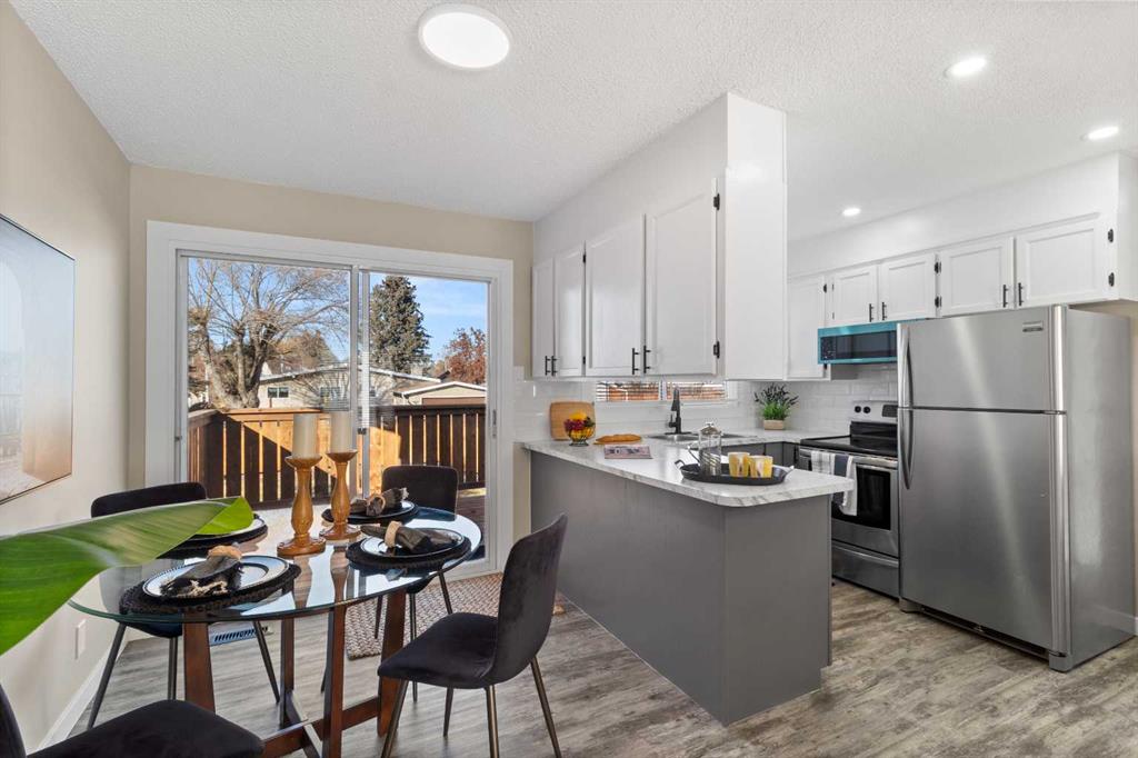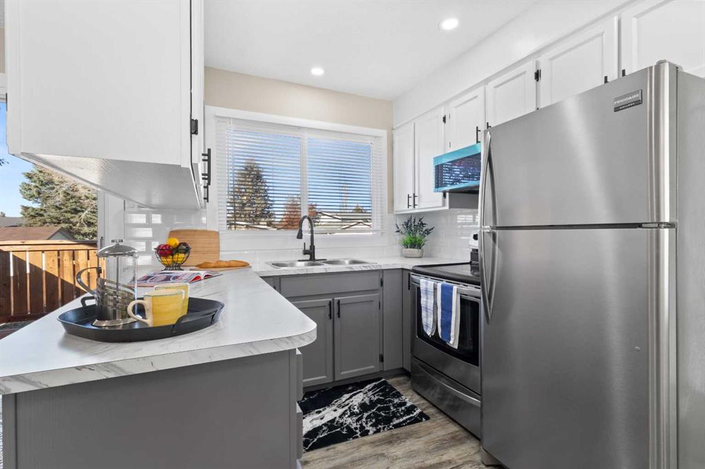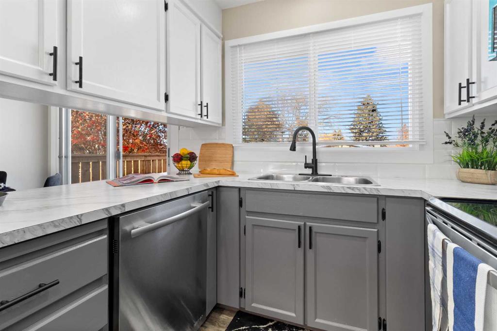 This newly renovated efficient bungalow is ready for a new owner. The main floor has just had extensive renovations. New vinyl flooring, new interior doors and trim , and new LED lighting. Kitchen countertops have been replaced , new microwave installed and cabinets repainted. Dishwasher is a Jenn Air and is whisper quiet. All bedroom windows and one window in the kitchen are new with new cordless blinds as well. The main floor bathroom has also just been renovated with new flooring back splash tile and new vanity. There is a separate laundry space just off the kitchen. This home has a large fully fenced yard with a double paved parking pad and rear laneway access. There is a good sized storage shed in the back yard with concrete ramp. The attached deck off the kitchen patio has been rebuilt with treated lumber. There is a separate door off the deck that gives private access to the basement .The basement is currently rented out for $985 a month with utilities included. The basement area has one bedroom one four piece bathroom a living and dining room space and a separate laundry and storage area. The shingles on the home were just replaced and facia as well. New eavestrough are scheduled to be installed. Seller is also bringing in new additional insulation to be blown in for the attic space. Furnace is newer and hot water tank is brand new as well. Pick your upstairs tenant and set your rent where you want it. This a great investment opportunity you could move into the upstairs space and keep the basement rented out.