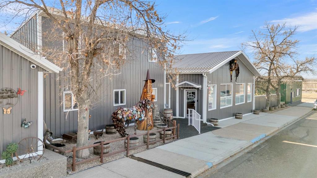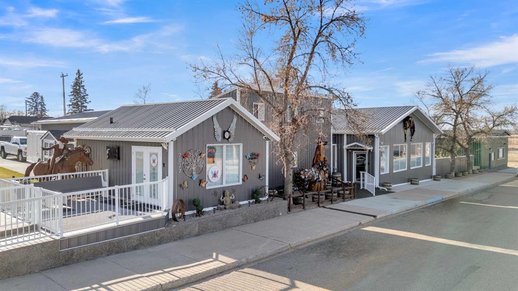 Once-in-a-lifetime opportunity! Live, work, & create your dream lifestyle in the heart of Bowden! Welcome to this one-of-a-kind commercial property located right on Main Street in the charming, centrally located community of Bowden, Alberta. Perfectly positioned between Calgary & Red Deer & just off the QE2 Highway, this landmark property offers a balanced live/work lifestyle or dynamic investment with endless potential. Situated on 4 contiguous C1-zoned lots with 200’ of prime Main Street frontage, this versatile property combines small-town charm with big business opportunity. Extensive renovations over the past four years make it turnkey & ready to accommodate nearly any vision—outdoor markets, café, lounge, event venue, medical or professional offices, car lot, or creative studio. Designed for accessibility & flexibility, this property invites your entrepreneurial dreams to life. At its core is a beautifully updated residence (1920) & addition featuring 6 bedrooms, 2 baths, & an integrated storefront/office—the perfect live/work setup. The 125’x120’ lot includes the home, shop, & yard space. Recent upgrades: new metal roofing/siding, metal fencing, updated plumbing/electrical, new flooring, sidewalks, rubberized walkways, water softener/filtration system, & extensive cement work (sidewalks, parking pads, etc.).The front office connects seamlessly to the storefront with high ceilings & admin wicket, offering a customer-ready layout. 2 furnaces, a 60-gal. hot water tank, modern finishes, & a re-parged basement for extra storage ensure efficiency & comfort. The 2007 addition adds 5 separate rooms—ideal for private client sessions, offices, or extra living space. With vaulted ceilings, 4 skylights, & roughed-in in-floor heating, it’s perfect for owner-occupiers or staff accommodations.Outside, the 50’x120’ yard features mature landscaping, pear, apple, & cherry trees, providing a peaceful retreat.The heated 32’x44’ shop (2022) is fully finished with 220V, 2-10’x16’ overhead doors, 12’ ceilings, metal roof/siding, 2 automatic sliding gates, 2 large parking pads, & a new shed—ideal for workspace, storage, or deliveries.Adding charm & flexibility, the detached yoga studio (1940) & courtyard on 75’x120’ adjoining lot were fully renovated in 2023. The studio includes a half bath, electric baseboard heat, upgraded insulation, & a rear composite deck with gas hookup—perfect for workshops, wellness, or events. The fenced courtyard features new cement (2023), RV/market plug-ins, two new sheds, manual gates, & two parking pads with alley access—great for markets, weddings, or outdoor entertainment. Fully fenced with metal fencing, security system, Alexa-integrated smart features, & heat-traced eaves, the property is designed for comfort, safety, & low-maintenance living. Whether you’re an entrepreneur, investor, or someone seeking a lifestyle change, this remarkable property delivers unmatched versatility, exposure, & charm. Adjoining R2 lot w/ duplex available (MLS#A2269598)