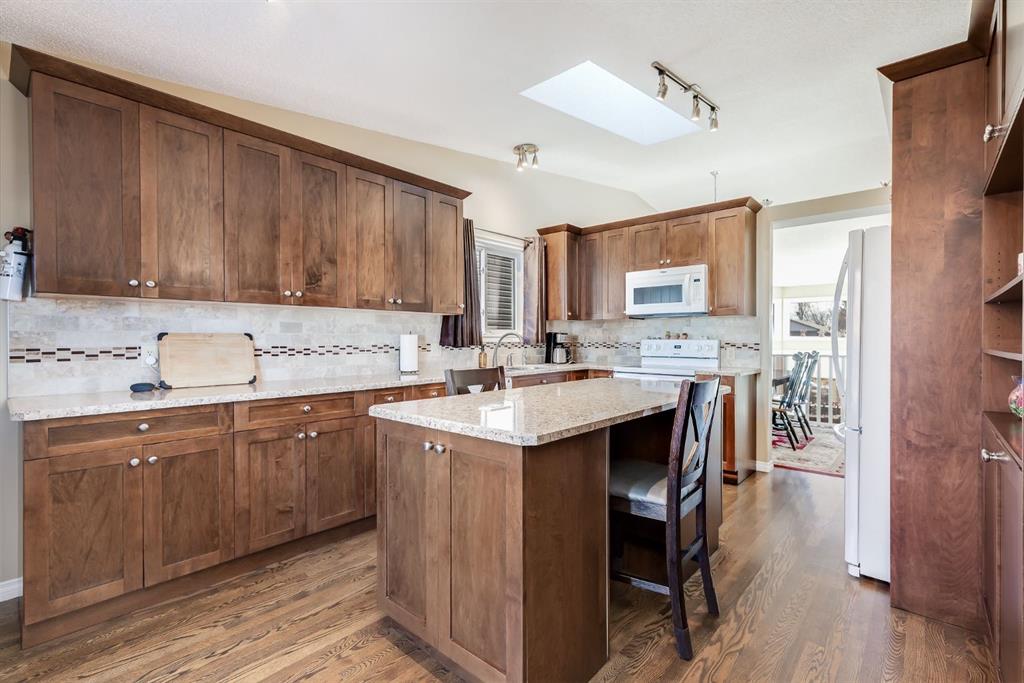Welcome to this lovely Bi-Level in the fantastic Community of Meadowbrook. This Home has seen many Updates including: TRIPLE PANE WINDOWS, Kitchen renovation (2012), and Gorgeous Hardwood Flooring. When you arrive, you will immediately notice the Over-length Driveway and the Oversized Windows in the Front Living Room. This Bi-Level boasts a Spacious Living Room off the Entry with Vaulted Ceilings and Oversized Triple Pane Windows that bathe the Home with Natural Light. With only 6 steps leading you to the Main Level, you will enjoy the Renovated Kitchen that features a Vaulted Ceiling with a skylight, Solid Wood Cabinetry including a Custom Cabinet with Shelving and extra power, Pantry, Island with lots of extra storage and space for 2 stools, a Breakfast Nook and access to the Deck. The Dining Room holds a larger table and overlooks the Living Room. The Primary Bedroom can hold a King Bed, has a Walk-in Closet and a 4 Pc Ensuite with Jacuzzi Tub. 2 Additional Bedrooms and a 4 pc Bathroom complete the Main Level. The Lower Level has a Huge Recreation Room with SUNSHINE WINDOWS and a Corner Fireplace that has a blower fan, Bedrooms 4 and 5, the Large Laundry Room with Half Bath, and the Crawl Space for extra Storage. The Yard is Fully Fenced, has mature trees, a Storage Shed, and the Deck with Vinyl deck boards is enclosed below for extra storage. The 20 x 19\' Garage is insulated and drywalled on the exterior walls. This Home also has a gas line for bbq. This Home is on a quiet and low traffic street with super easy access to the walking trails. Book your showing today and make it yours.