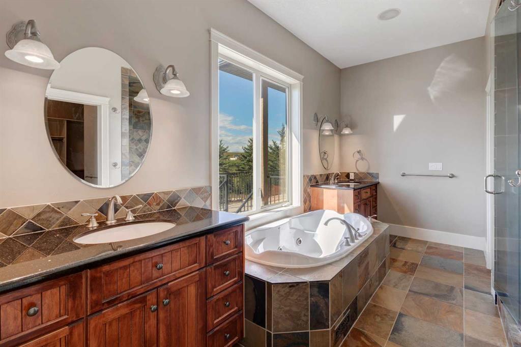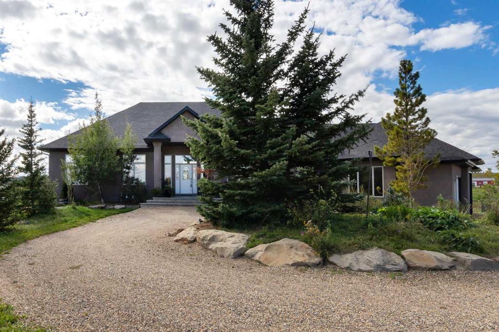 Experience seclusion and tranquility on this private 15 acre estate. Bordering the Horse Creek environmental reserve, sweeping views of rolling hills and countryside pasture impress from every angle. Access miles of walking and equestrian trails just off property which provide access to serene nature and panoramic mountain views. This thoughtfully planned, elegant Bungalow provides over 5500 total developed square feet and the 1700 sq. ft. barn/shop frames the perfect backdrop for an equestrian setting or workshop away from the hustle and bustle of the city. This extraordinary property is located minutes away from Cochrane, offering the perfect investment for the discerning buyer interested in having a country-quiet, yet city close acreage lifestyle with all the luxuries, along with the unique and incredibly valuable ability to subdivide the property. This is truly a lifestyle of elegance, privacy, and enduring value. Crafted with quality, this residence is luxurious western country living at its finest, boasting meticulous, timeless design with an expansive interior that will truly awe you. Stepping into the entrance you’re greeted by soaring 14’ ceilings into an inviting haven perfect for hosting memorable gatherings with friends and family. New hardwood floors throughout the living room, kitchen and dining room, and a grand wood-burning fireplace are warm and inviting. For the chef in the family, the kitchen is a dream come true, featuring a Subzero fridge, huge island, prep sink, and ample storage. The primary bedroom offers new hardwood flooring and stunning sunset mountain views. The ensuite is a sanctuary unto itself, featuring a deep soaker tub, a steam shower, double sinks, and an enviable closet. Descend the beautiful spiral staircase to the walkout lower level, where you\'ll once again be struck by the attention to detail. A wall of expansive windows illuminates a bright seating area and patio, roughed in for hot tub. Adjacent to the custom designed bar, you\'ll discover a wine room where you can collect, showcase, and savour your favourite wines. This level features a family room with snooker table, a dedicated theatre room with gas fireplace, gym area and a sunroom/den. In addition, for the independent family member or caretaker is a legal one-bedroom suite with a full Kitchen and separate entrance. The oversized triple car garage is also equipped with in-floor heat and has ample space to accommodate a full-size truck. In addition, the heated barn/shop awaits with 576 sq. ft. attached overhang ideal for hay storage or parking oversized equipment. Currently set up for horse barn with six portable indoor stalls, interior standpipe for water, 16’ aisle way, large, separate tack/tool room, one man door and two oversized doors. Potential space for a 125 x 250 riding arena adjacent to the barn. Two exterior standpipes, plus one automatic waterer. Cross fencing and paddocks with three plywood horse shelters.
