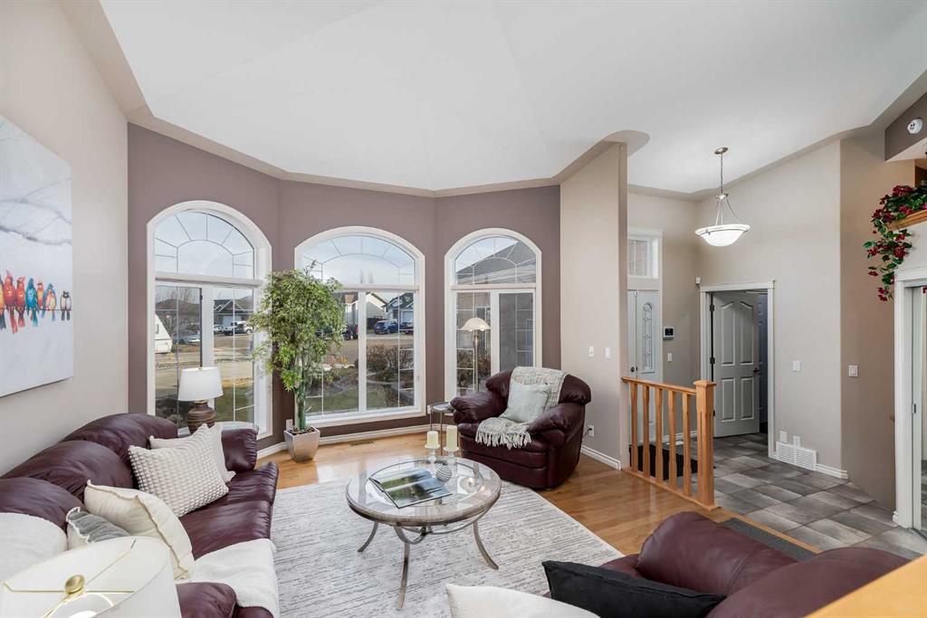 Immaculately maintained bungalow offering just under 2,800 sq. ft. of living space on a massive, beautifully landscaped lot on a quiet Sylvan Lake street. The main level is bright and airy with soaring vaulted ceilings and expansive windows, flowing through generous living and dining spaces. Your private primary retreat features a cozy two-way fireplace, double sinks, an oversized jetted tub, and direct access to the rear deck—ideal for morning coffee. Everyday convenience continues with main-floor laundry and smart storage. The lower level is designed for relaxing and entertaining with feature ceilings, a dedicated media area (built-in TV & speakers), a second gas fireplace, and large bedrooms for family or guests. Comfort upgrades include in-floor heat in the basement and the attached garage, central A/C, a cold room, plus a full-home water filtration system and water softener. Outdoor living shines with a three-tier deck anchored by a fire pit and framed by mature landscaping—room to gather, grill, and play. Parking and hobbies are covered: an oversized heated front-attached garage and a heated rear detached garage—space for trucks, boats, bikes, and a workshop. All this on a quiet street, just minutes to the lake for four-season fun—boating and beach days in summer, skating and ice fishing in winter. come take a look at this beauty today!
