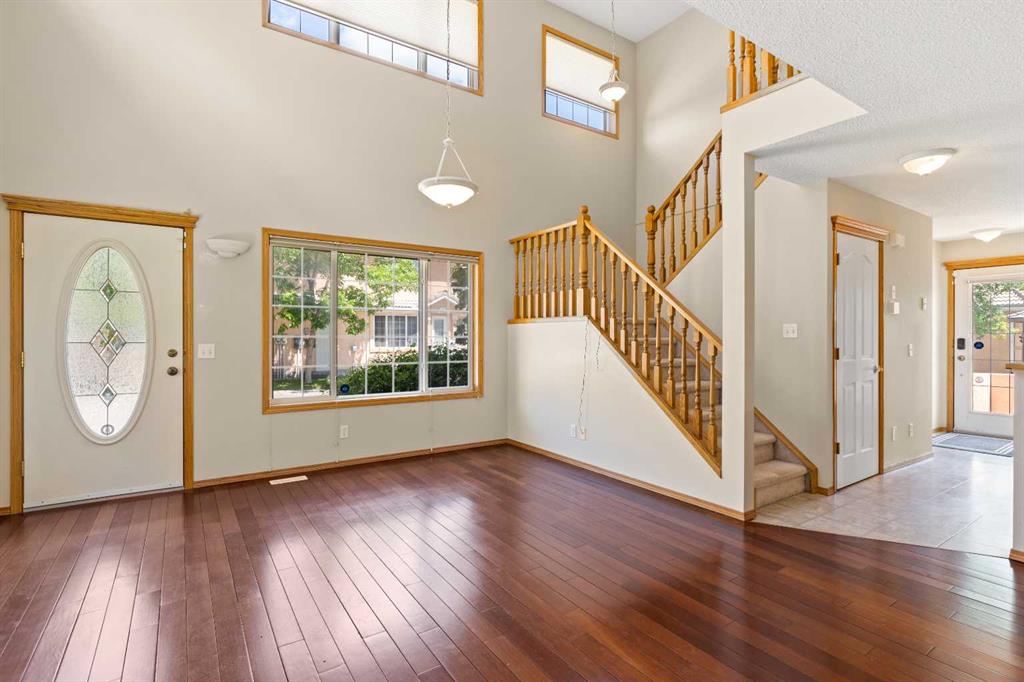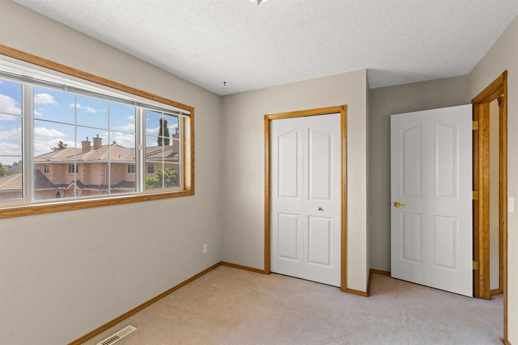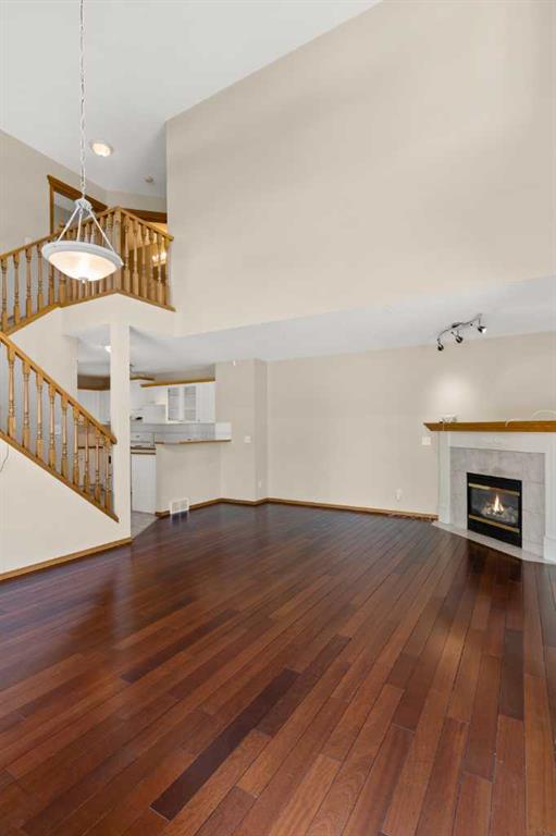 Welcome to this Gorgeous cul-de-sac town home in a gated community with a total living space of 1,270.32 st ft in the popular lake community of Coral Springs. Pride of ownership is evident in this well-kept 2 bedrooms + den, 2.5-bathroom end unit family home with an attached garage and a full driveway situated in a private gated community of Coral Cove Estates. Enter into a bright & open main floor with stylish high ceiling open to below for that airy feeling, windows throughout providing plenty of sunshine, a chandelier, and stunning cherry-stained hardwood flooring. The layout is fantastic with a Sunny living room with a cosy corner fireplace, next to the dining area overlooking the crisp white kitchen featuring ample counter space, lots of white cabinets for storage and modern kitchen immaculate appliances. The door in the kitchen leads to a concrete patio perfect for BBQs. Rounding out the main floor is the convenient laundry room and the guest bathroom. Upstairs, you’ll find a huge Primary bedroom with a walk-in closet and 4-piece ensuite, an additional bedroom with good closet space and a full bathroom. The basement is wide open feature. It is a family room ideal for late-night family bonding, a den for extra accommodation or you can convert it to your private home office plus plenty more extra storage space. Out back is your private patio & BBQ area. You’ll have an attached garage with more room for storage and work area plus a full driveway and lots of parking space for guests off-street. As a resident, enjoy a quiet neighbourhood and security as there are CCTVs monitoring common areas. You will also have access to the lake, beach, tennis courts, fishing and boating and many more amenities. Excellent maintenance and snow removal crew and Keyed access to waste disposal shed. Spectacular location! Steps away from the community’s private lake, Circle K, schools, shops, Stony Trail via McKnight Blvd and more. Don’t miss out on your chance to live in this premium complex!
