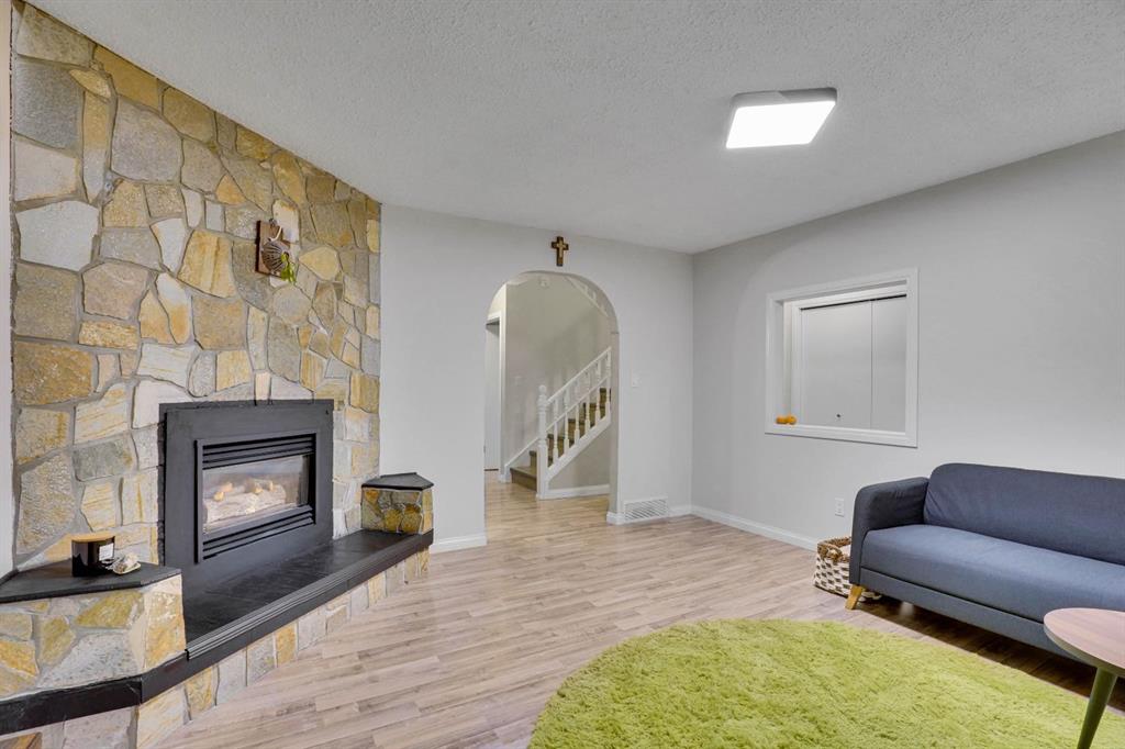 Step inside to a bright, freshly painted interior featuring new baseboards, new lighting throughout, and gorgeous laminate floors on all three levels. The inviting living room is filled with natural light and centered around a cozy gas fireplace, creating the perfect space to relax or entertain.